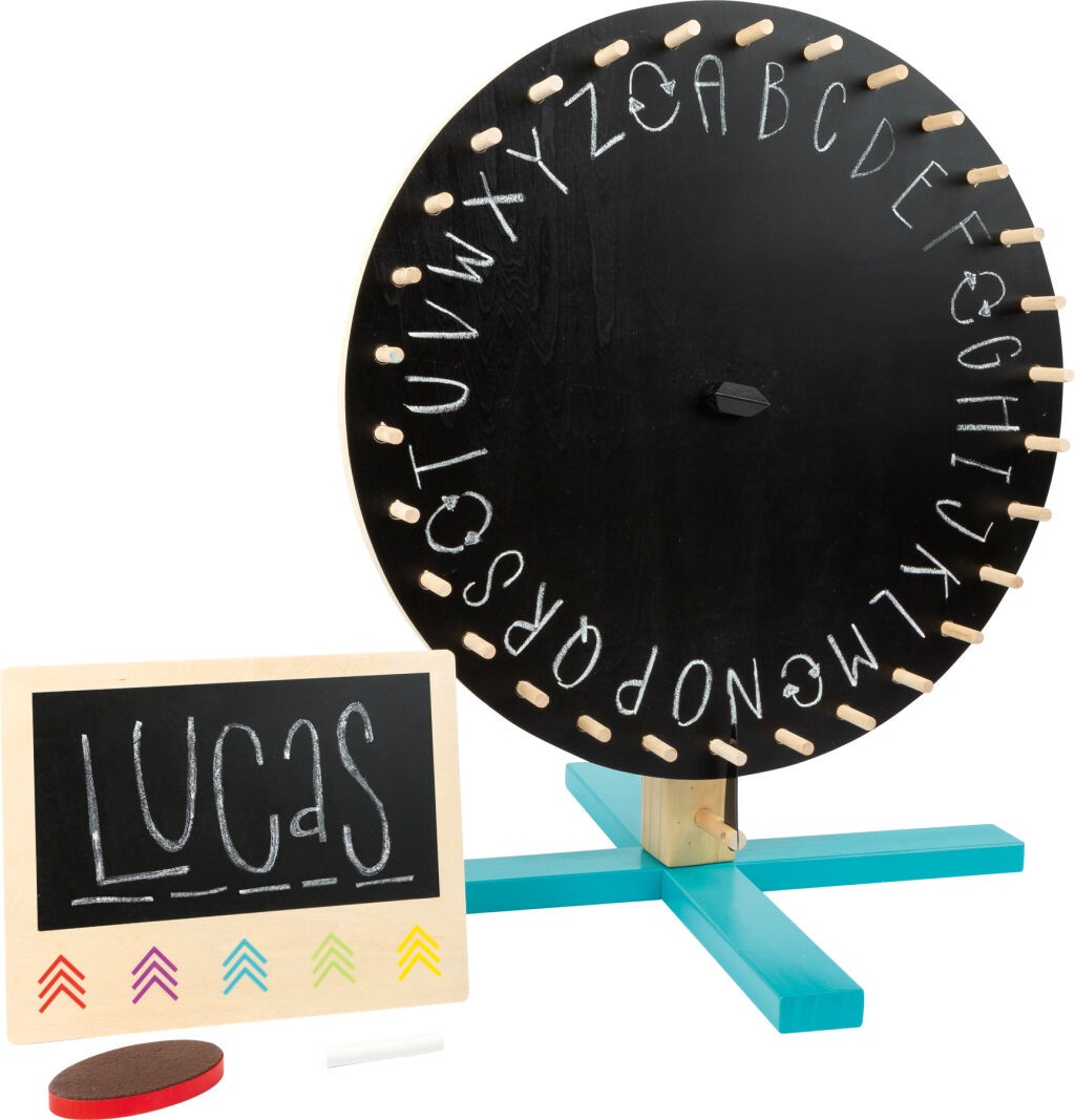 Vítěz s každým otočením! Kolo štěstí vyrobené z certifikovaného dřeva se skládá z kotouče, který se otáčí a lze jej snadno modifikovat. Na jedné straně je 30 barevných polí a na druhé straně je tabule. Můžete tak vytvářet vlastní soutěže znovu a znovu. Týmy a jména mohou být zapsána na menší samostatnou tabuli, která je součástí balení. Balení obsahuje také křídu a mazací houbu. Toto kolo štěstí je ideální pro zábavné hry doma, v mateřské škole nebo na narozeninových oslavách!  Hlavní vlastnosti: rozvíjí komunikační dovednostivelká zábava pro kolektiv dětívyrobeno ze 100% FSC dřeva   Značka a certifikát FSC® (Forest Stewardship Council) zaručuje, že dřevo, ze kterého byl produkt vyroben, nebylo vytěženo nelegálně a pochází z lesů obhospodařovaných šetrným či přírodě blízkým způsobem, ve kterém jsou dodržovány přísné environmentální a sociální požadavky. Značka FSC® na výrobku znamená, že svým nákupem pomáháte chránit lesy a podporujete šetrné, odpovědné či přírodě blízké hospodaření, díky kterému jsou naše lesy stabilnější, zdravější, mají přirozenou druhovou skladbu a lépe odolávají negativním následkům klimatických změn.