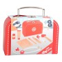 O zdraví panenek a plyšáků bude s doktorským kufříkem dobře postaráno! Obsahuje všechny důležité nástroje a pomůcky. Injekční stříkačka je vybavena pohyblivým pístem, aby hra byla uvěřitelná a děti se mohly cítit jako skuteční lékaři. Pevný a skladný kufřík je vybaven odolným kovovým zavíráním a uchem. Všechny součásti jsou robustní, vyrobené z masivního dřeva, opatřené zaoblenými hranami a kvalitní, hladkou povrchovou úpravou. Hlavní vlastnosti:stetoskop, injekce, kladívko, teploměr, špachtle, tuba, lékovka a zápisníkkufřík s odolným zavíráníminjekce s pohyblivým pístemrobustní a odolné provedení z masivního dřeva