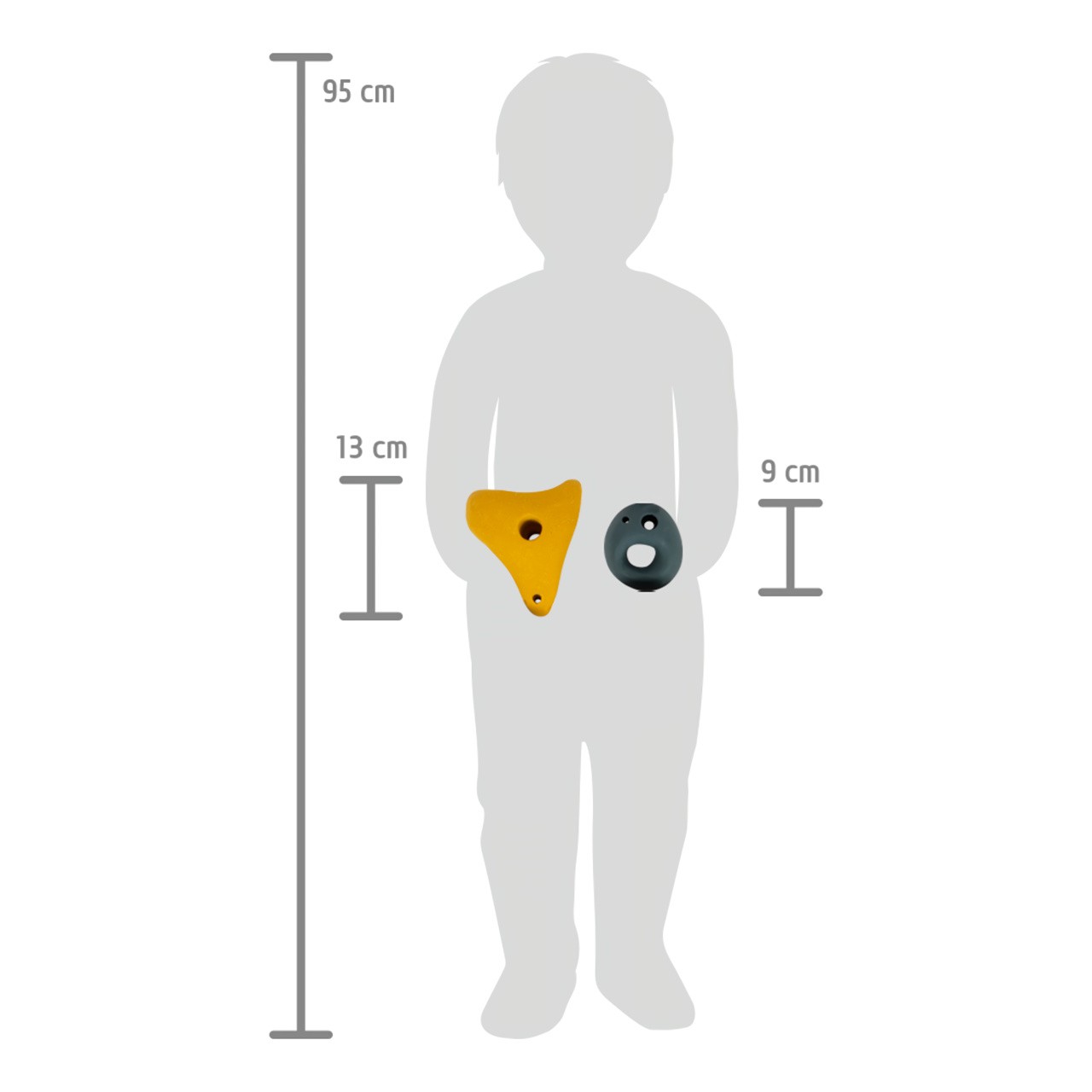 Rozměry žlutý úchyt: 13x10x6 cm Výška modrého úchytu: 3 cm, Ø 9 cm max. Materiál: plast Věk: 3+ Nosnost 60 kg Celý popis
