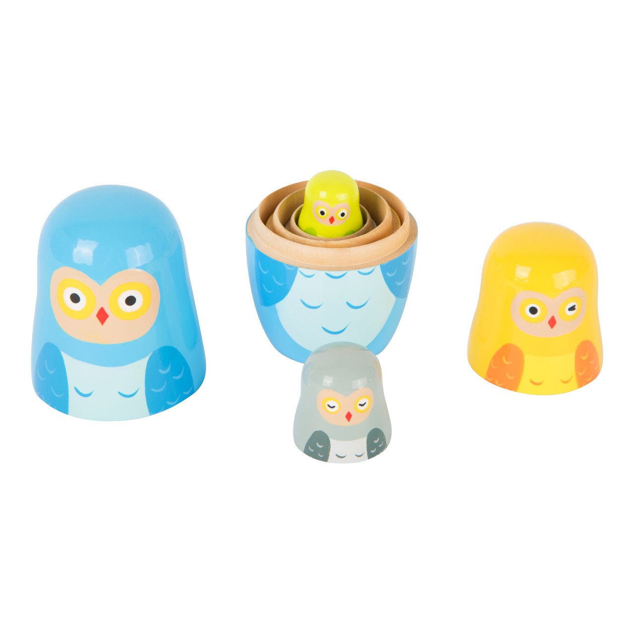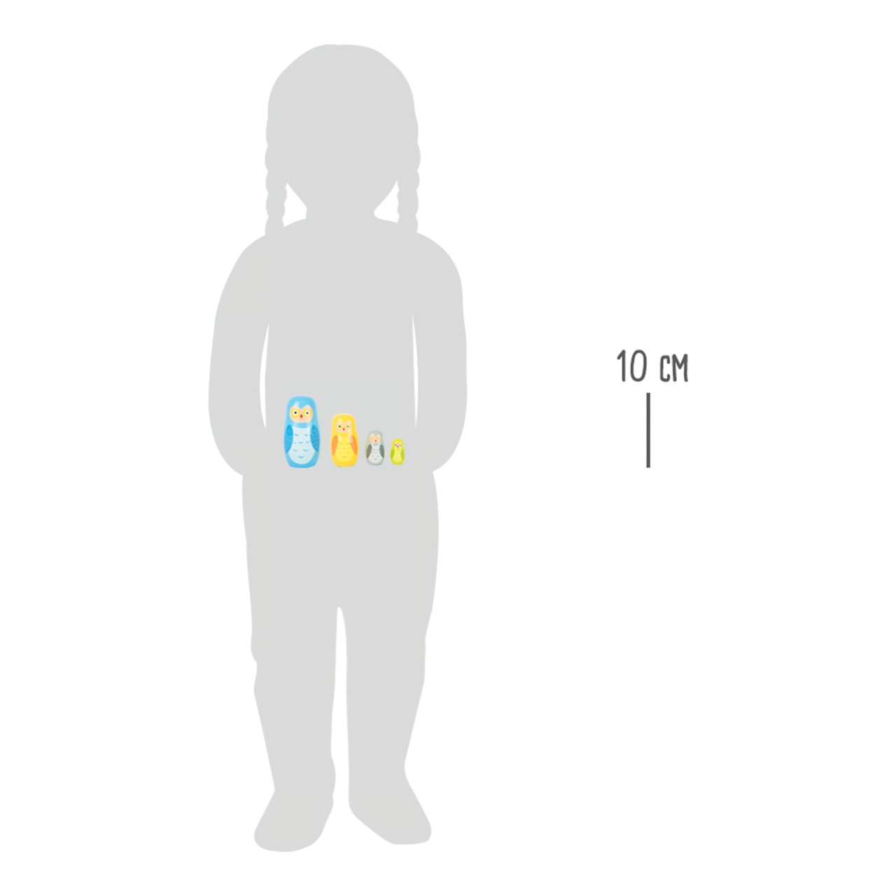 Čtyři láskyplně malované figurky Matrjoška v podobě soví rodiny. Menší sovy se podle velikosti postupně schovávají do sebe. Tyto panenky se snadno uprostřed otevírají, což je skvělá praxe pro koordinaci ruka-oko a jemné motorické dovednosti. Figurky Matrjošky vyzařují své jedinečné kouzlo a jsou roztomilé na pohled - lákavý poutač s velkým studijním potenciálem pro Váš dětský pokoj! Hlavní vlastnosti: 4 figurky soví rodinkyrozvíjí koordinaci ruka-oko a jemné motorické dovenosti