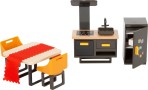 Rozměry skříňky: 7,5x3x11 cm Rozměry kuchyňského koutu: 8,5x4x11 cm Věk: 3+ Materiál: dřevo, plast Počet dílů: 30ks Celý popis
