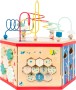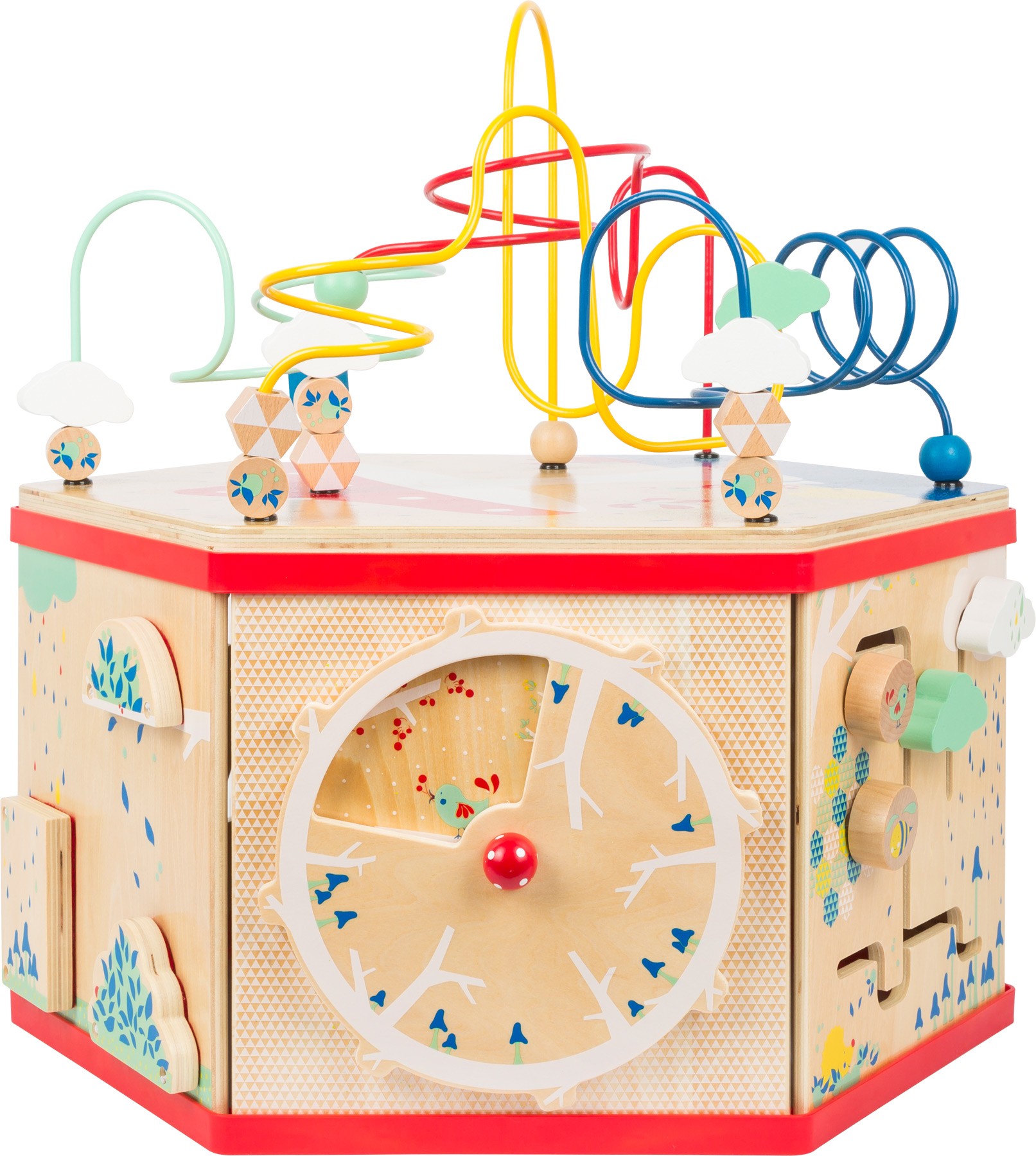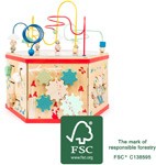 Zábava v exkluzivním designu! Tato kvalitní motorická kostka ze 100% certifikovaného dřeva FSC® ze skupiny produktů „Move it!“ nabízí herní prvky na každé straně kostky. Skládací dřevěné pexeso procvičuje numerické porozumění, zábavná vyhledávací hra s ježky, beruškami a ptáky a sezónní hodiny odhalí zajímavá fakta o jaru, létě, podzimu a zimě. Motorickou kostku doplňuje hra s ozubenými koly a labyrintem. Zábavu završuje velký kovový labyrint na odnímatelném víku. Víko motorické kostky je odnímatelné - při otočení vznikne rovná plocha kterou lze využít v této formě jako stoličku nebo stůl! Hlavní vlastnosti: podporuje jemnou motoriku a logické myšlenípomáhá dětem naučit se rozpoznávání tvarů a barev odjímatelné víko, při jejimž otočení lze motorickou kostku využít jako stůl či stoličkuvyrobeno ze 100% FSC dřeva Značka a certifikát FSC® (Forest Stewardship Council) zaručuje, že dřevo, ze kterého byl produkt vyroben, nebylo vytěženo nelegálně a pochází z lesů obhospodařovaných šetrným či přírodě blízkým způsobem, ve kterém jsou dodržovány přísné environmentální a sociální požadavky. Značka FSC® na výrobku znamená, že svým nákupem pomáháte chránit lesy a podporujete šetrné, odpovědné či přírodě blízké hospodaření, díky kterému jsou naše lesy stabilnější, zdravější, mají přirozenou druhovou skladbu a lépe odolávají negativním následkům klimatických změn.