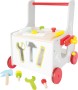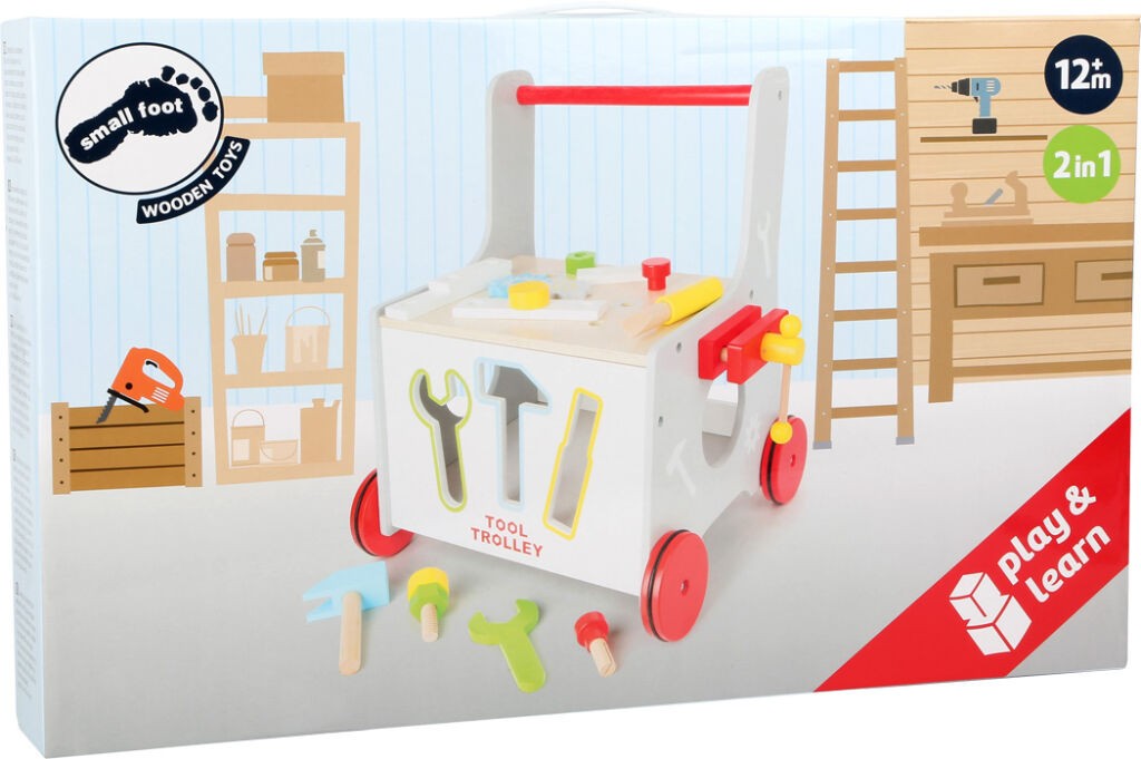 Pozor všichni kutilové! S tímto dětským chodítkem a jeho četným příslušenstvím vyrobeným ze dřeva je zaručena všemožná zábava. Kromě toho, že se děti učí chodit, mohou si také procvičit své první mechanické úkoly s mnoha různými prvky. Děti si mohou hrát s kladivem, šroubovákem a klíčem, pomocí mnoha vyvrtaných otvorů v horní části chodítka zdokonalují své motorické dovednosti. Všechny nástroje pak mohou být uloženy uvnitř chodítka. Z čela chodítka najdou děti zábavu v podubě vkládačky, cílem je vložení příslušných tvarů do správného otvoru. Se všemi druhy příslušenství mohou malé děti šroubovat, vrtat a zatloukat, k dispozici je dokonce i svěrák s otočným vřetenem! Toto dětské chodítko na kolečkách s gumovou úpravou snižující hluk na pevných podlahách a zvyšují protiskluznost, trénuje obratnost, motoriku a podporuje děti při prvních krůčcích. Design vhodný do každého dětského pokoje! Hlavní vlastnosti: Zodpovědnost za kvalitu a bezpečnost, aby si děti mohly bezstarostně hrátKolečka s gumovou úpravou pro zajišrění tichého chodu a protiskluzovou funkcíTrénuje obratnost, motoriku a podporuje děti při prvních krůčcíchDesign vhodný do každého dětského pokojePevná stabilní konstrukceFunkční motorické prvkyÚložný prostor pro nářadí i hračky
