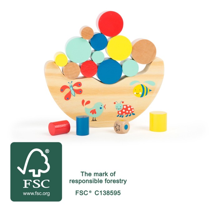 Komu se podaří naskládat tu nejvyšší věž? Velkou výzvou, ve které musí být všechny herní kousky vyrobené ze 100% certifikovaného dřeva FSC® umístěny na vratké houpačce. Obrázek ukazuje, který kus je umístěn jako první. Hlavní vlastnosti: rozvíjí jemnou motoriku dětí podporuje zvídavost vyrobeno z 100% FSC dřeva Značka a certifikát FSC® (Forest Stewardship Council) zaručuje, že dřevo, ze kterého byl produkt vyroben, nebylo vytěženo nelegálně a pochází z lesů obhospodařovaných šetrným či přírodě blízkým způsobem, ve kterém jsou dodržovány přísné environmentální a sociální požadavky. Značka FSC® na výrobku znamená, že svým nákupem pomáháte chránit lesy a podporujete šetrné, odpovědné či přírodě blízké hospodaření, díky kterému jsou naše lesy stabilnější, zdravější, mají přirozenou druhovou skladbu a lépe odolávají negativním následkům klimatických změn.