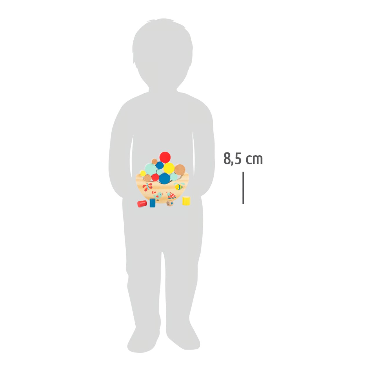 Rozměr: 14x2x8,5 cm Rozměr válečku: 3cm, Ø 2 cm Věk: 3+ Materiál: 100% FSC dřevo Celý popis