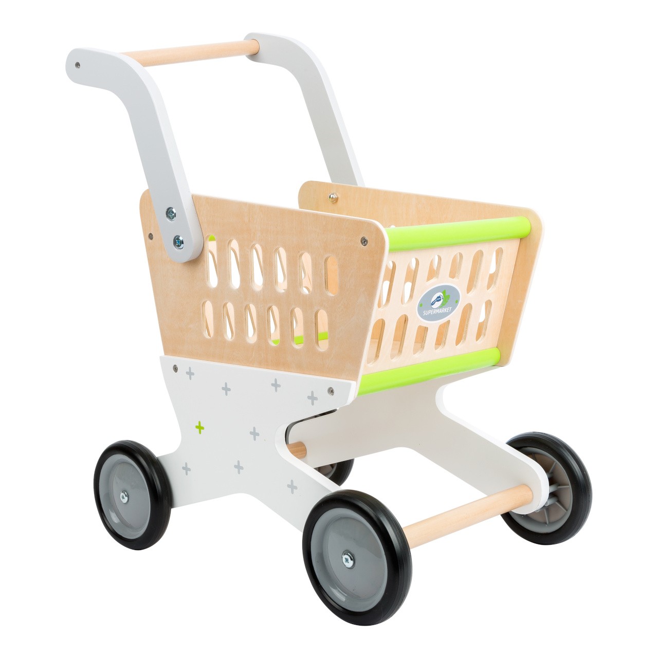 Na nákupy jedině s exkluzivním a elegantním vozíkem! Doplňte jím obchod, či stánek a nechejte své děti rozehrát fantastické hry, jejichž prostřednictvím mohou rozvíjet komunikační dovednosti. Je snadno ovladatelný a nabízí dostatek prostoru, který lze využít i k uložení hraček a vození plyšáků, nebo panenek. Jeho pryžová kolečka zajišťují tichý, kultivovaný chod na všech typech povrchů. Pevné a odolné dřevěné provedení může nabídnout dlouhou životnost a svou barevností vkusně doplní každý dětský pojíček. Výrobek vyžaduje montáž, dodáváno s obrázkovým návodem k sestavení. Hlavní vlastnosti:univerzálně využitelnýtichý, kultivovaný chodrobustní a odolné dřevěné provedení