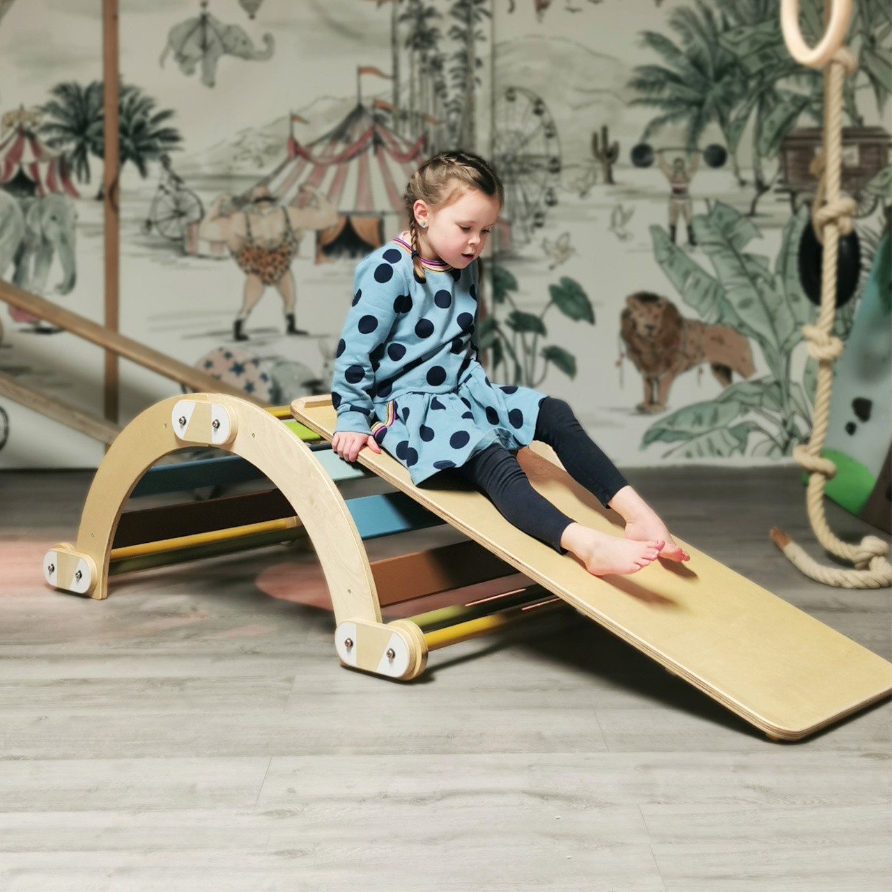 Na klouzačku sednout, připravit, jet! Tato oboustranná klouzačka je vyrobená z pevného dřeva, v kombinaci s prolézací žebřinou a houpačkou Adventure ji můžete také použít jako domácí klouzačku, most nebo šikmou plošinu. Hračka je praktická v tom, že můžete upravit její úroveň obtížnosti dle věku a dovedností dítěte.Při kombinaci s ostatními výrobky z řady Adventure můžete vytvořit kreativní gymnastickou tělocvičnu přímo u vás doma. Jednoduchý design a tvar, moderní barvy a mnoho přírodního dřeva, bude se hodit do každého pokojíčku! Hlavní vlastnosti: oboustranná klouzačka z pevného dřevakompatibilní s dalšími výrobky z řady „Adventure“rozdílné úrovně obtížnostitrénuje rovnováhu a koordinacivhodné i pro terapeutické účelyjednoduchý design a tvar, moderní barvy a mnoho přírodního dřeva