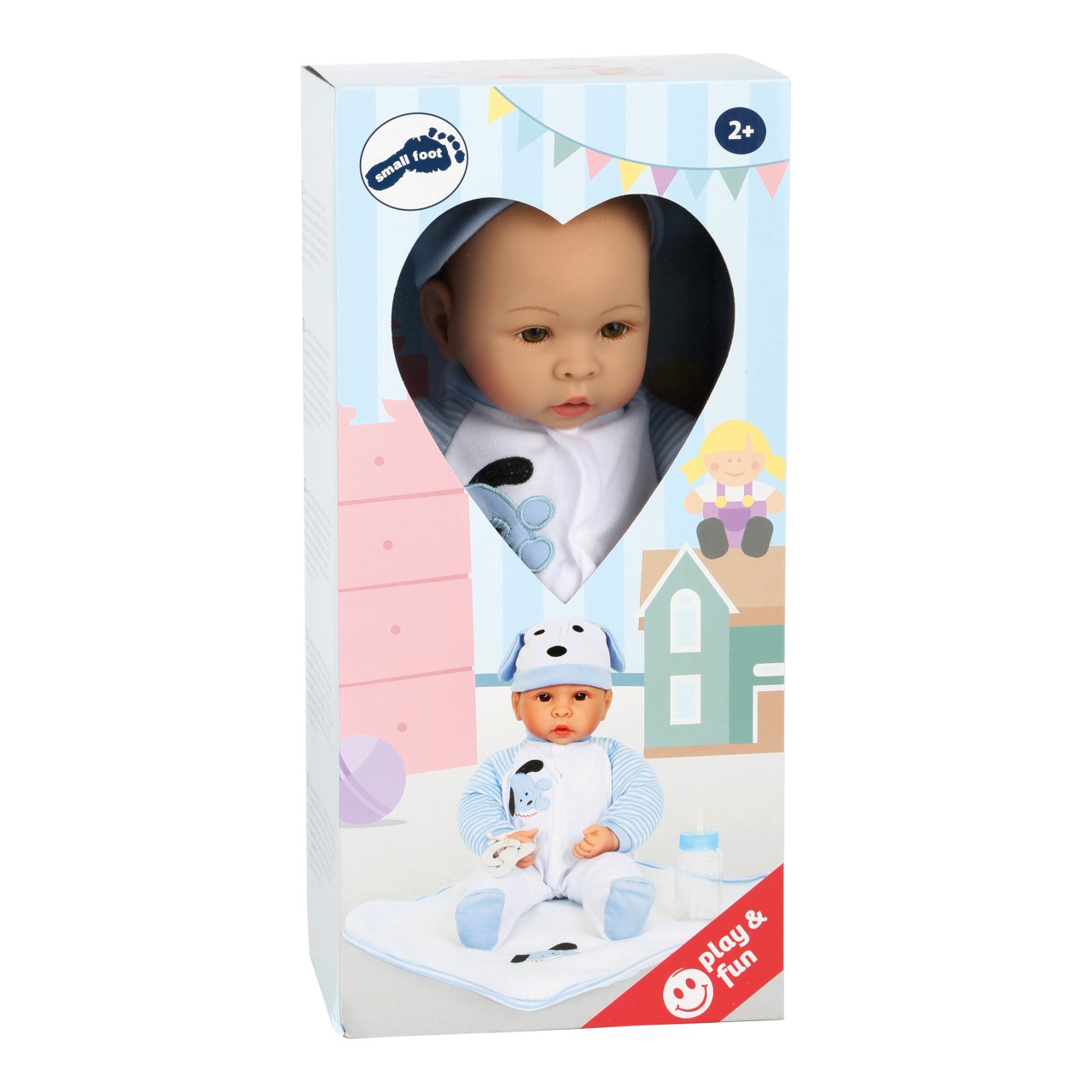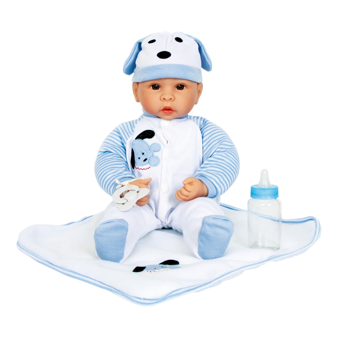 Malý Beno je velký milovník psů. Panenka má nasazenou čepičku a dupačky s roztomilým modro-bílým motivem štěněte. Balení zahrnuje kojeneckou lahvičku, dudlík, který se dá vložit do pusy, a měkkou přikrývku. Hlavní vlastnosti: obsahuje oblečení, kojeneckou láhev, dudlík a měkkou deku