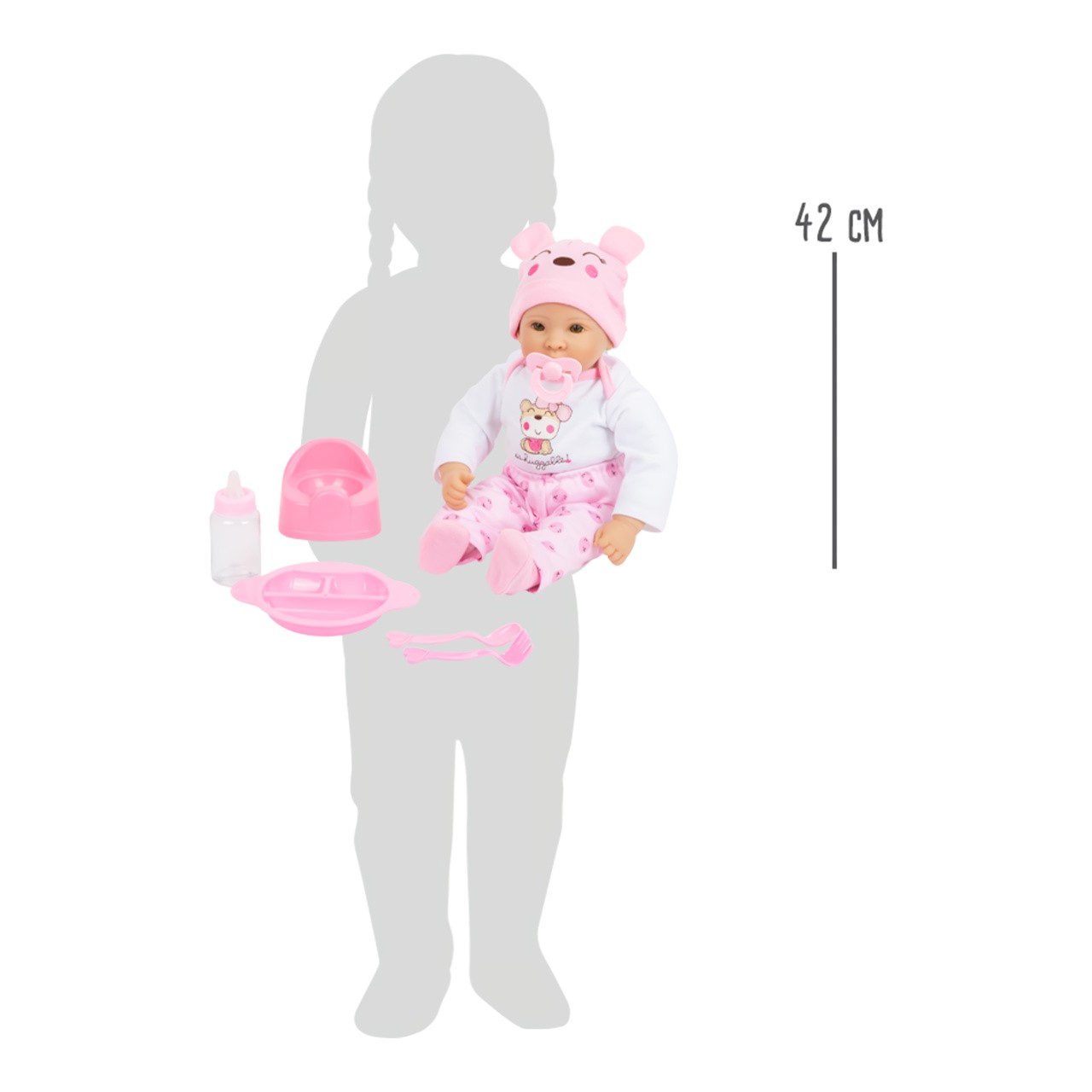 Panenka Marie s měkkým látkovým tělem, plastovou hlavičkou a končetinami se spoustou doplňků. Oblečení pro panenku se snadno obléká i svléká. Součástí balení je i barevně sladěný dudlík, sada nádobí, kojenecká láhev a nočník. Obzvláště realistický výraz obličeje s krásnýma nemrkacíma očima. S panenkami s měkkým tělem si hrají mladší děti, jejichž motorické dovednosti ještě nejsou tak vyvinuté. Hraní s panenkami podporuje rozvoj představivosti a sociálních dovedností. Dokonalý společník na hraní a mazlení díky měkkému tělu. Tato roztomilá panenka je skutečným obohacením každé sbírky panenek. Hlavní vlastnosti: měkké látkové tělíčkorozvíjí představivost a sociální dovednostisoučástí balení je oblečení panenky, nádobí a nočník