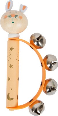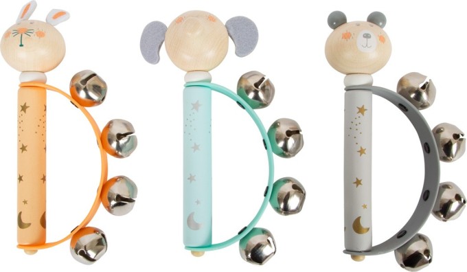 Tamburína pro miminka a kojence se čtyřmi malými zvonečky na pružném plastovém oblouku naučí rytmus! Díky hladkému pocitu z dřevěné rukojeti a malým rozměrům lze tuto dětskou tamburínu snadno uchopit malými ručičkami. Přírodní dřevo v kombinaci s láskyplným designem, roztomilými plstěnými prvky a jemnými pastelovými barvami dělají z tohoto dětského nástroje absolutní poutač a ideální drobný dárek. Podporuje také rozvoj akustického vnímání. Ideální pro kojence a pro ranou hudební výchovu, učení se prvním rytmům nebo rytmické doprovodné hraní na jiné hudební nástroje.  Nejedná se o hudební nástroj, ale o hračku. Hlavní vlastnosti: čtyři zvonky na pružném plastovém obloukuhladká dřevěná rukojeť ve velikosti pro dětský úchopvhodné pro ranou hudební výchovu