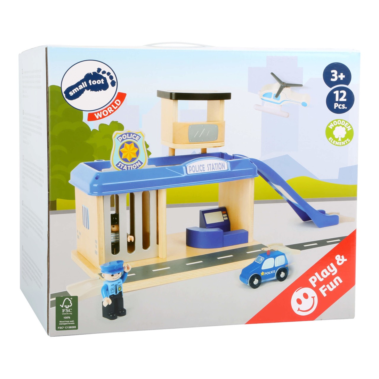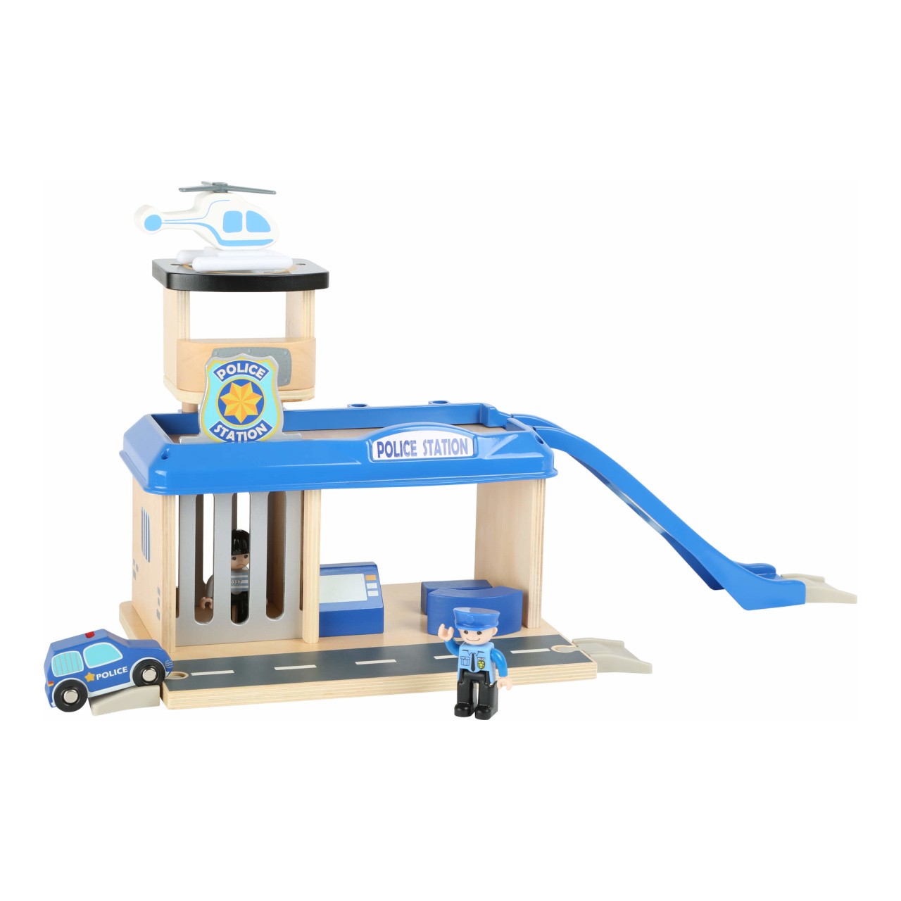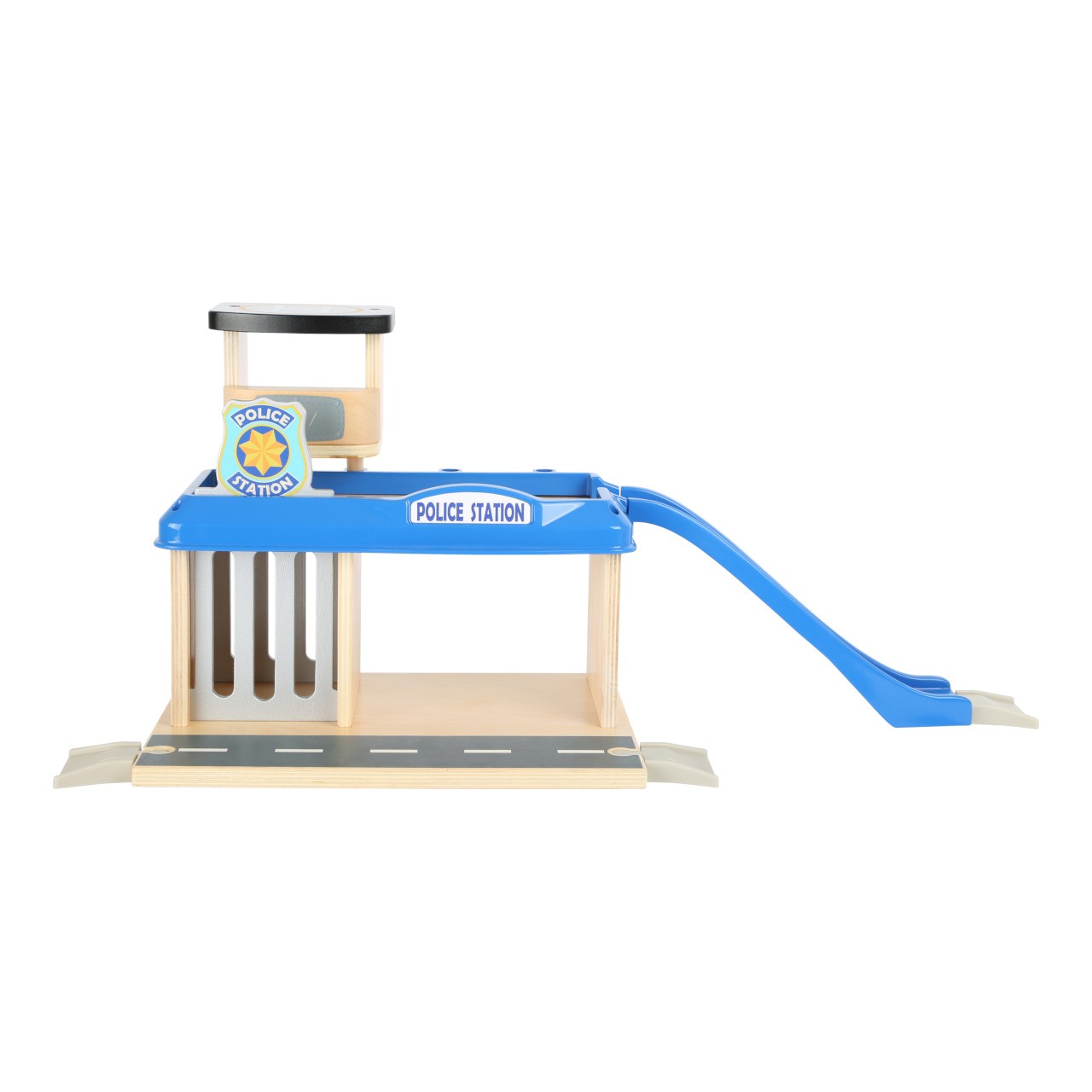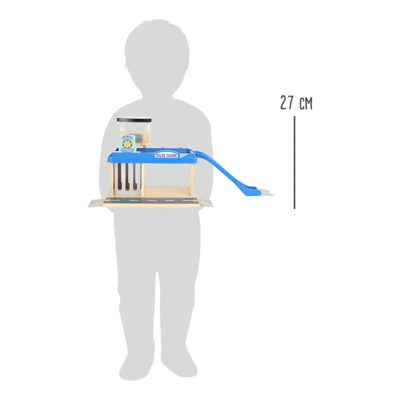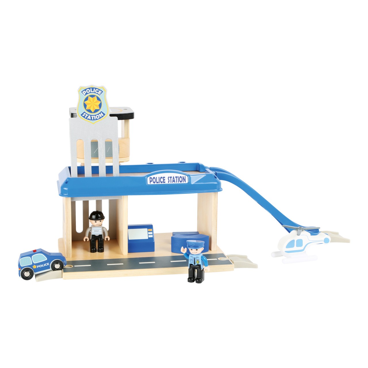 Žádný dareba už neunikne spravedlnosti! S policejní stanicí mohou děti rozehrát fantastická dobrodružství, mezi příslušenstvím je jim totiž k dispozici jak policejní autíčko a vrtulník, tak i pohyblivá figurka policisty a zločince. Stanice nabízí dvě podlaží a věž s heliportem. V přízemí naleznete celu s výsuvnou mříží a v patře lze s využitím nájezdové rampy zaparkovat. Díky kombinaci silné překližky a robustních plastových dílů může hračka nabídnout vysokou odolnost a životnost. Dřevo použité při její výrobě bylo získáno z udržitelných zdrojů a nese certifikaci FSC®. Lze ji rozšířit množstvím příslušenství a je také plně kompatibilní s vláčkodráhami jiných velkých výrobců.   Hlavní vlastnosti:stanice, 2 díly interiérového vybavení, autíčko, helikoptéra a 2 figurky2 podlaží s věží, rampa a cela s výsuvnou mřížírobustní a odolné provedeníkompatibilní i s vláčkodráhami dalších výrobcůvyrobeno s použitím 100% FSC® dřeva   Značka a certifikát FSC® (Forest Stewardship Council) zaručuje, že dřevo, ze kterého byl produkt vyroben, nebylo vytěženo nelegálně a pochází z lesů obhospodařovaných šetrným či přírodě blízkým způsobem, ve kterém jsou dodržovány přísné environmentální a sociální požadavky. Značka FSC® na výrobku znamená, že svým nákupem pomáháte chránit lesy a podporujete šetrné, odpovědné či přírodě blízké hospodaření, díky kterému jsou naše lesy stabilnější, zdravější, mají přirozenou druhovou skladbu a lépe odolávají negativním následkům klimatických změn.
