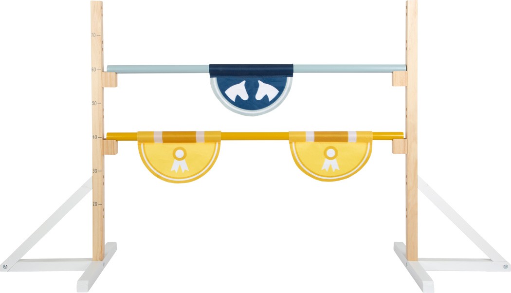 Rozměry stojanu: 39x30x80 cm Délka překážkové tyče: 88cm Věk: 3+ Materiál: dřevo Celý popis