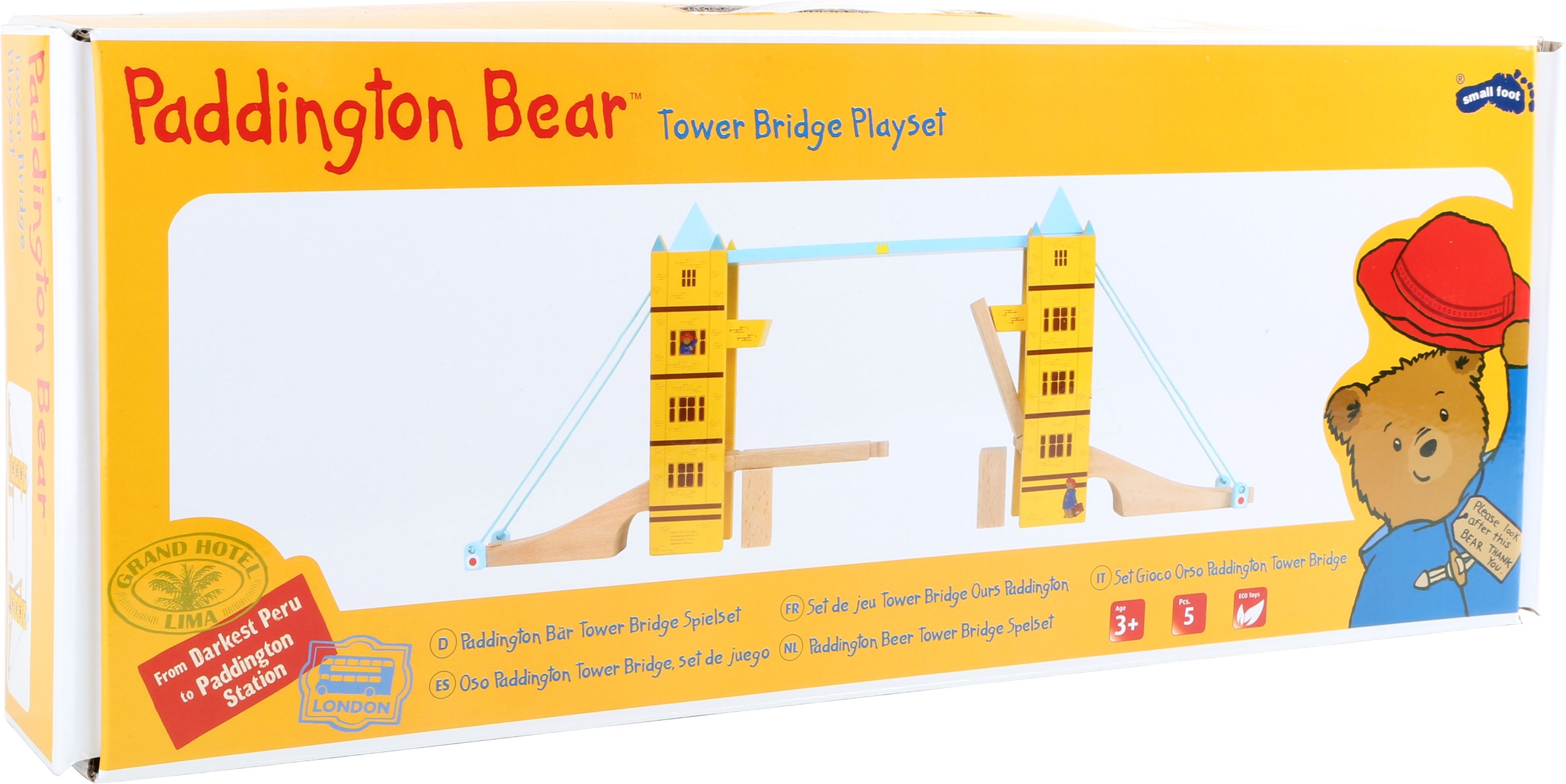 Tento dřevěný most nesmí chybět v žádné sbírce železnic. Inspirovaný londýnským Tower Bridge nadchne tento most skládací funkcí a skvělými barvy. Most se dá připojit ke každé kolejnici značky.Německá firma Legler zaměřená na výrobu kvalitních dřevěných hraček od roku 1996. Všechny dřevěné hračky značky small foot mají označení CE a jsou vyráběny dle evropské normy pro bezpečnost hraček EN 71. Použité barvy jsou speciálně vyvinuty pro dřevěné hračky a jsou odolné i proti slinám dětí. Dřevo, které se používá pro tyto hračky, většinou pochází z lesnických společností zapojených do zalesňování. To nabízí všem zákazníkům možnost přispět k zachování přirozeně rostoucích lesů. Dřevěné hračky small foot jsou zářivě barevné produkty, které jsou vyrobeny převážně z přírodních surovin - dřeva. Dětem dělají radost od útlého věku, rozvíjí jejich hmatové a smyslové dovednosti. Cílem značky small foot je podporovat duševní a fyzický vývoj dětí.