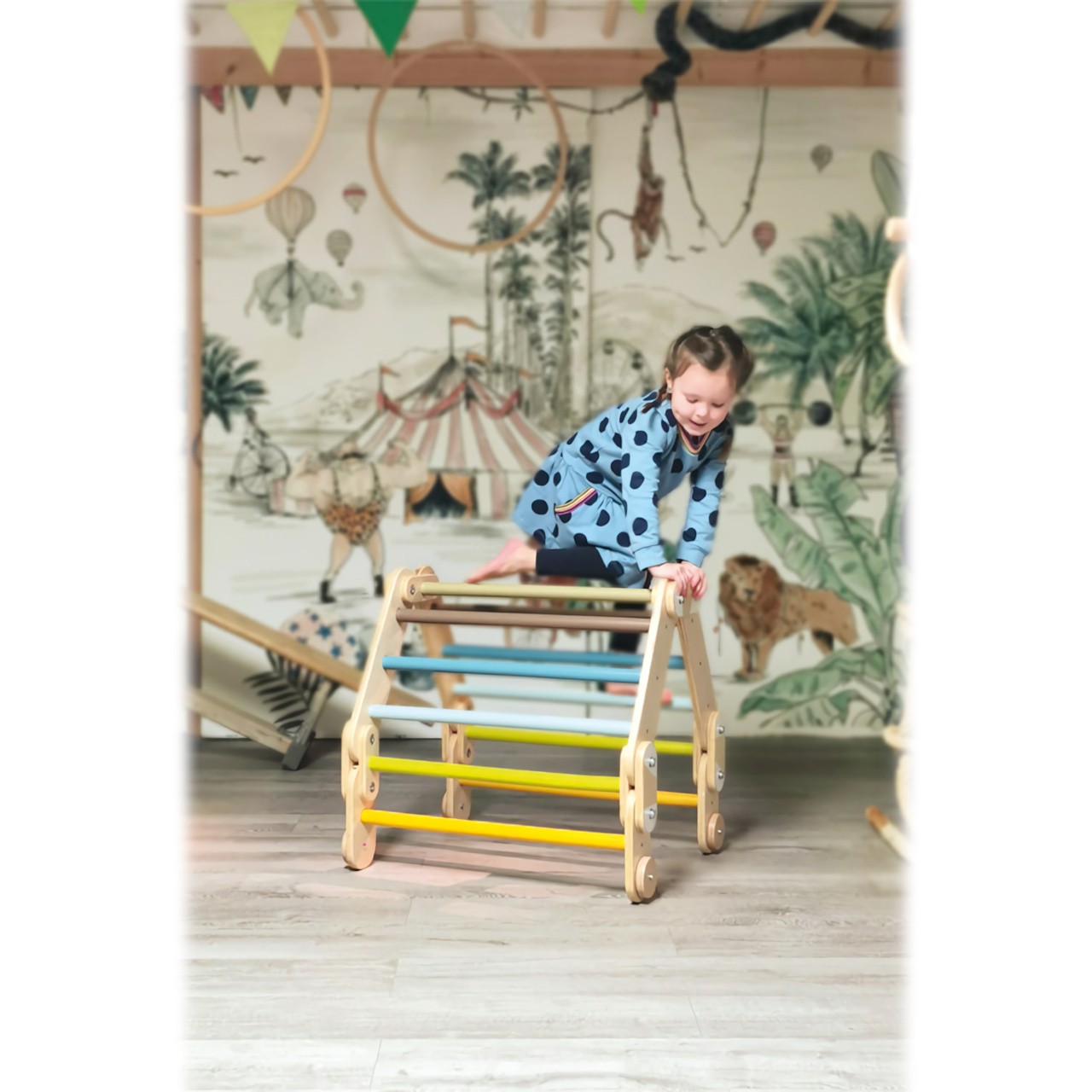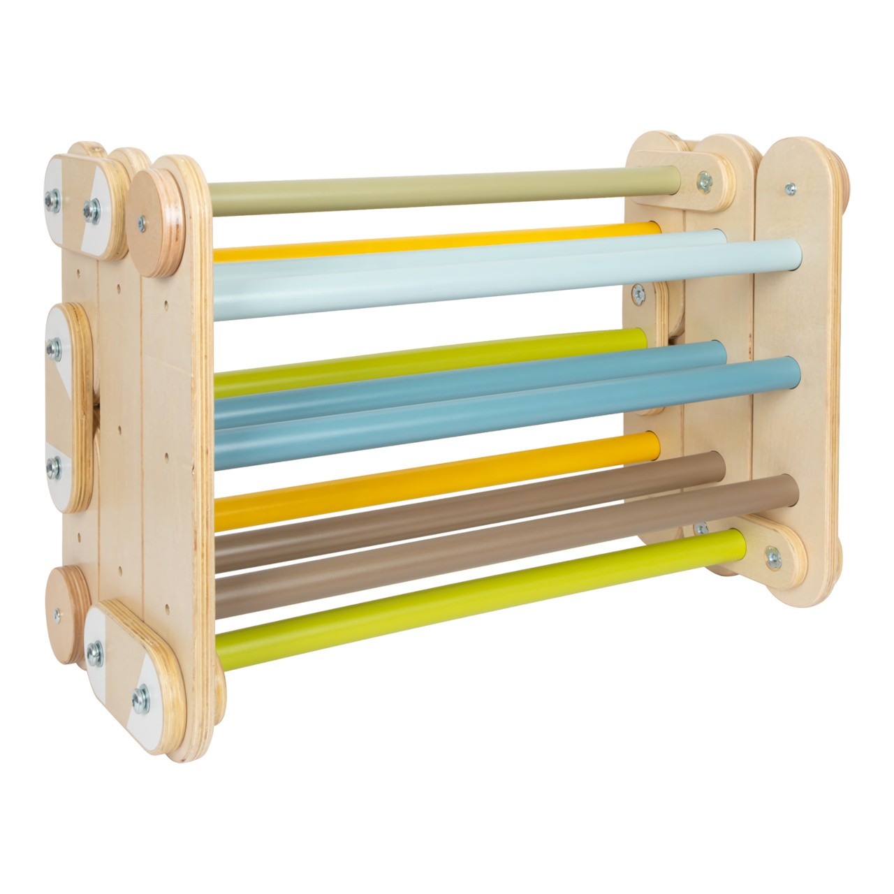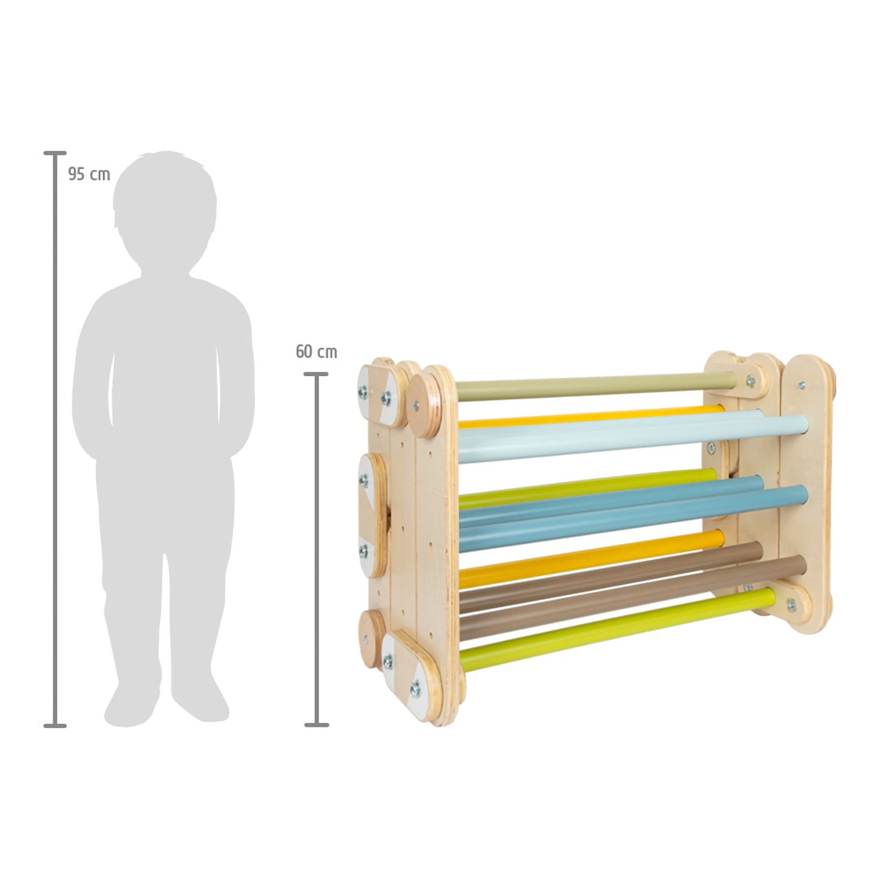 Prolézací žebřina vyniká svou flexibilní, nastavitelnou konstrukcí. Lze ji rozložit do několika různých tvarů, a pobízí tím k tvorbě celých sestav tvořených větším počtem této hračky. Díky této vlastnosti může být v případě potřeby také mimořádně skladná. Děti mohou s její pomocí rozvíjet motorické dovednosti, rovnováhu či koordinaci pohybu, a lze ji tak využít i k pohybové terapii. Skvěle doplní každý pokoj, nebo herní koutek a lze ji hravě kombinovat s dalšími, konstrukčně i barevně sjednocenými, překážkami řady Small Foot Adventure. Je vyrobena z kombinace odolné překližky a masivního dřeva. Výrobek vyžaduje montáž, dodáváno s detailním návodem k sestavení.   Hlavní vlastnosti:široké možnosti nastavení a rozloženíodolné dřevěné provedenínosnost max. 50 kg