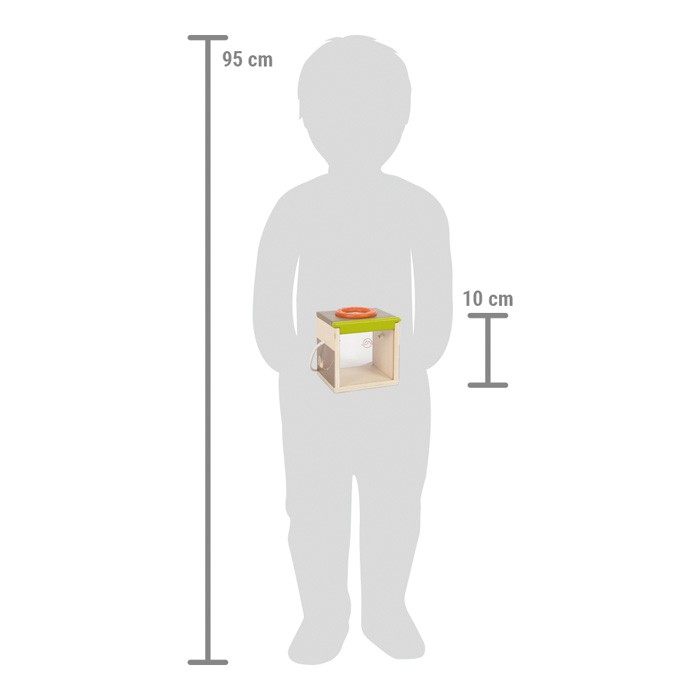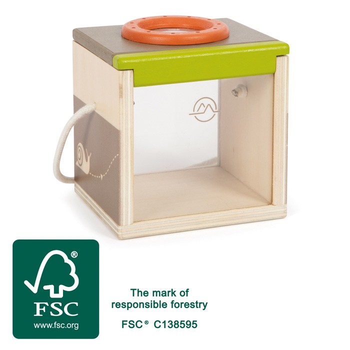 Děti rády zkoumají přírodu kolem sebe. Tento box na pozorování hmyzu je ideální hračkou pro malého průzkumníka. Stačí se připravit k pečlivému odchytu a může začít kontrola hmyzu všeho druhu. Box na hmyz je vyroben z odolného dřeva s certifikací FSC®. Nabízí skvělý pohled na pohybující se zvířátka ze tří stran díky plexiskla a lupy nahoře. Do útrob pozorovacího boxu se vejdou větvičky a listy, takže chycený hmyz lze pozorovat bez toho, aby byl hmyz ve stresu, je chráněný. Box má větrací otvory, šňůrku pro přenášení jednou rukou a pohyblivé plexi okénko, které lze vysunout nahoru. Sofistikované výzkumné zařízení pro vzrušující túry do přírody, expedice a pozorování na zahradě, v lese nebo na poli. Hodí se také pro hravý výzkum mravenců, cvrčků nebo létajícího hmyzu, jako jsou berušky nebo motýli. Díky vysokému množství viditelného dřevěného materiálu, designu v zemitých tónech a přírodních zelených barvách, zaobleným hranám a hezkým ilustracím je tento pozorovací box opravdovým poutačem pro každé dítě.  Upozornění: box na hmyz není určen k dlouhodobému ustájení živých tvorů a měl by sloužit pouze ke krátkodobému pozorování. Hlavní vlastnosti: vyroben z odolného dřeva s certifikací FSC®sofistikované výzkumné zařízení design v zemitých tónechedukativní hračka   Značka a certifikát FSC® (Forest Stewardship Council) zaručuje, že dřevo, ze kterého byl produkt vyroben, nebylo vytěženo nelegálně a pochází z lesů obhospodařovaných šetrným či přírodě blízkým způsobem, ve kterém jsou dodržovány přísné environmentální a sociální požadavky. Značka FSC® na výrobku znamená, že svým nákupem pomáháte chránit lesy a podporujete šetrné, odpovědné či přírodě blízké hospodaření, díky kterému jsou naše lesy stabilnější, zdravější, mají přirozenou druhovou skladbu a lépe odolávají negativním následkům klimatických změn.