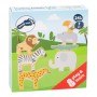 Rozměry slona: 9x1x6,5 cm Rozměry lva: 6,5x1x5,5 cm Věk: 12m+ Materiál: dřevo Obsahuje 7 dílků Celý popis
