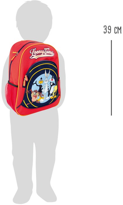 Bugs Bunny & Co. dělá z tohoto batohu perfektního společníka do školy. Velká i malá kapsa se zapíná na zip. Navíc dvě malé síťové kapsy po stranách lze využít pro uložení lahví. Další kapsa poskytuje prostor pro ještě více věcí. Popruhy batohu jsou polstrované a nastavitelné. Díky svým komiksovým obrázkům je batoh pro děti opravdovým poutačem. Hlavní vlastnosti: batoh do školy i pro volný časatraktivní obrázkynastavitelné, polstrované popruhyodolné provedení