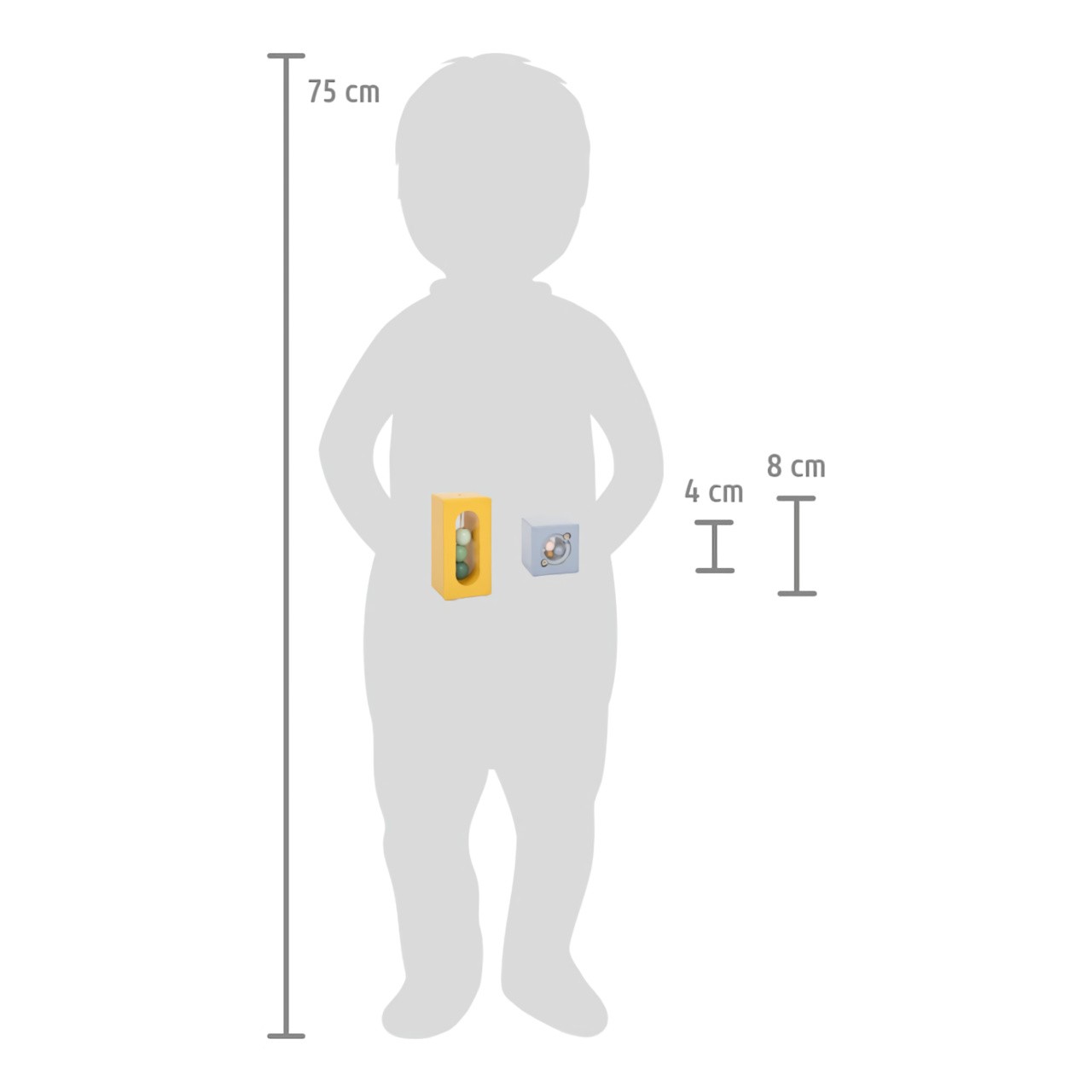 Max. rozměr kostky: 4x4x8 cm Věk: 12m+ Materiál: dřevo, kov, plast Celý popis