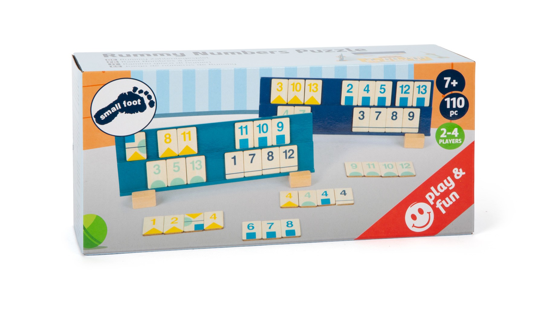 Hra pro celou rodinu! Rummy je klasická logická hra s čísly. Je populární u dětí i dospělých. Dřevěná hra v moderním designu zaujme nejen barevnou kombinací. Je vhodná i pro barvoslepé, dílky k sobě pasují kromě barvy i grafickým označením, které lze na dílcích také nahmatat. Ideální hra na cesty.Kdo vyloží všechny dílky jako první? Robustní stojánek z pevného dřeva je stabilní, nepřevrátí se ani pod tíhou hracích dílků. Hlavní vlastnosti: jedna z nejhranějších rodinných her na světě vhodná pro barvoslepéhrací dílky lze uložit do přiložené zadní částiideální na cesty Zkrácený návod hry:Před začátkem hry položte hrací dílky na stůl, číslicemi dolů. Každý hráč si vezme jeden dílek. Začíná hráč s nejnižším číslem. Pokud hrají 2 hráči, každý si vytáhne 10 hracích dílků. Pokud hrají 3 až 4 hráči, každý si vytáhne 7 hracích dílků. Tyto dílky si poté rozložte na své stojánky tak, aby na ně ostatní hráči neviděli. Zbývající kameny položte na stranu. Cílem hry je vyložit dílky na stůl v kombinaci tercie nebo postupky. Dílky žolíků můžete použít v jakékoliv kombinaci pro tercie i postupky. Můžete ale použít jen jednoho žolíka pro každou kombinaci. Pokud dílky vyložit nemůžete, vezměte si dílek z dobíracího balíčku, jinak jedno kolo stojíte... Dokumentace: návod ke hře Rummy (CZ)návod ke hře Rummy (SK)