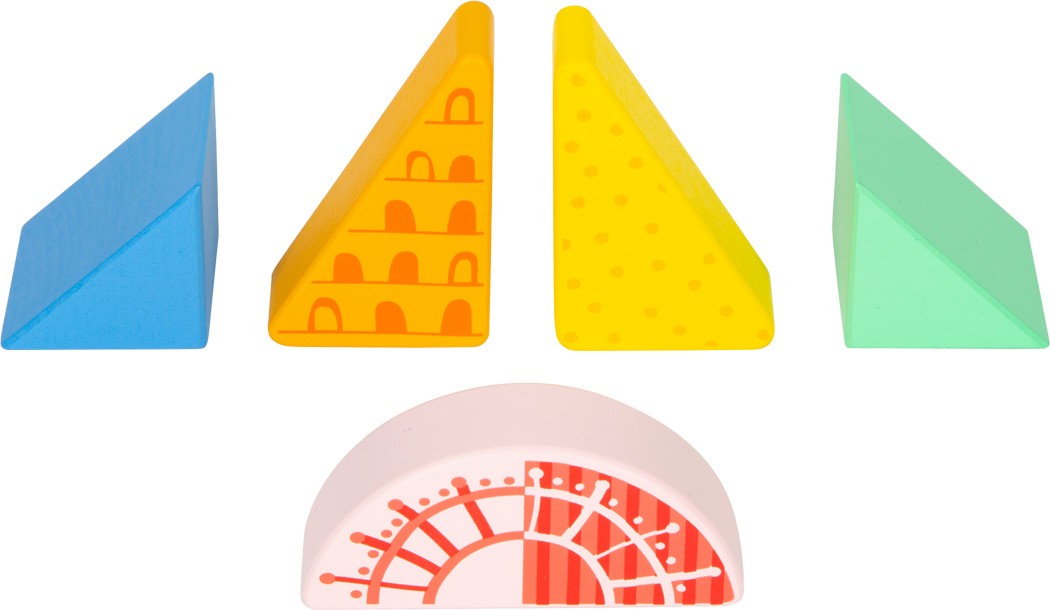 Rozměry největší kostky: 8x4x3,5 cm Rozměry nejmenší kostky: 4x2x3 cm Věk: 12m+ Materiál: dřevo Celý popis