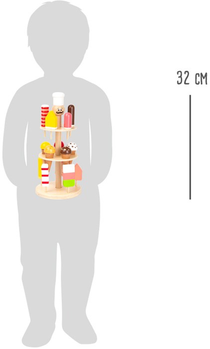 Mňam ... zmrzlina! Tento láskyplně navržený stojan na zmrzlinu z masivního dřeva splňuje všechna zmrzlinová přání. Zde si děti mohou vybrat svou oblíbenou zmrzlinu. Ať už jde o nanuky nebo zmrzlinu ve vaflovém kornoutku - není to snadné rozhodnutí! Různé příchutě zmrzliny lze snadno dát do stojanu na zmrzlinu, což z nich činí skutečný poutač na prodejním pultu v obchodě nebo v dětské kuchyňce či kavárničce.  Hlavní vlastnosti: Podporuje sociální dovednosti a jemnou motoriku dětí