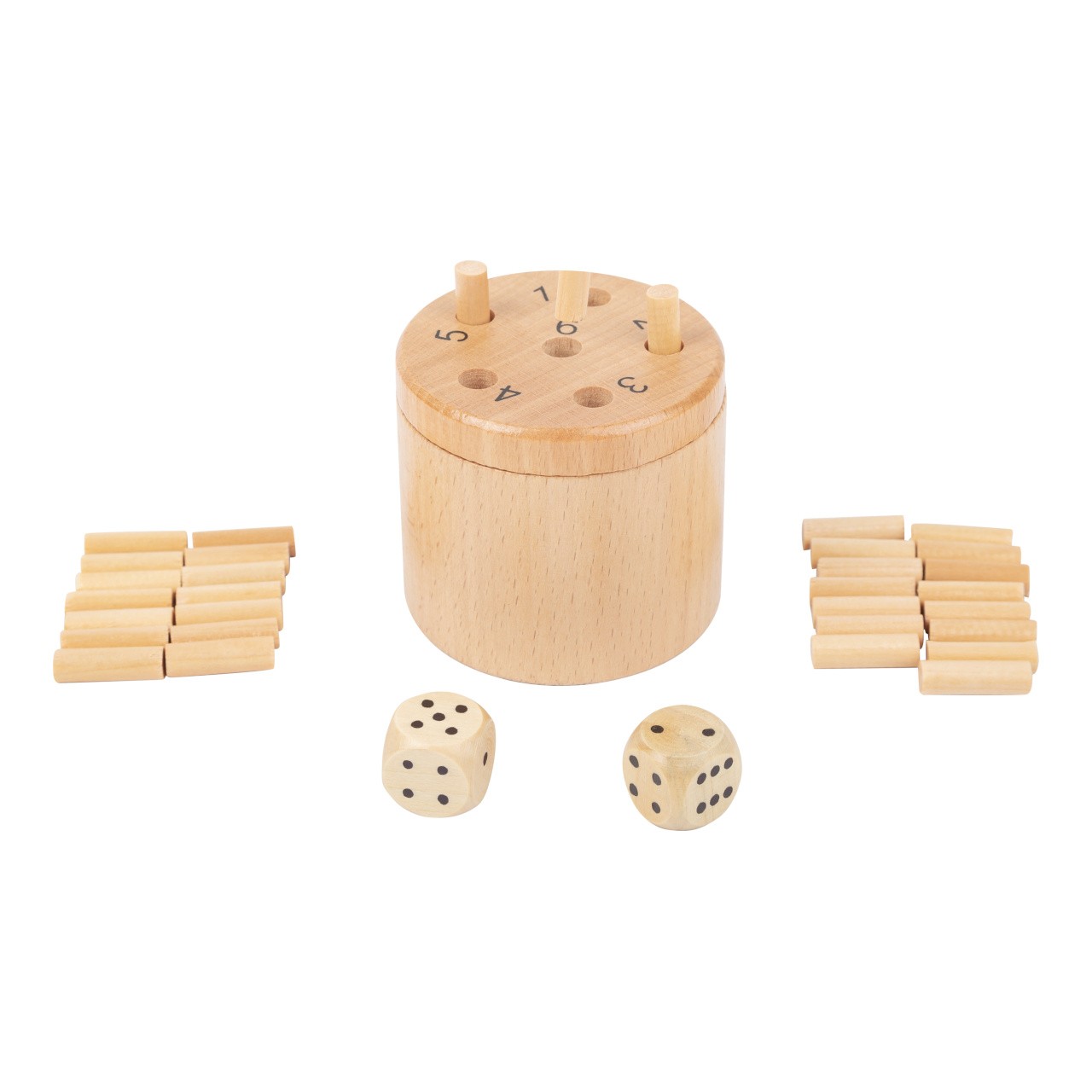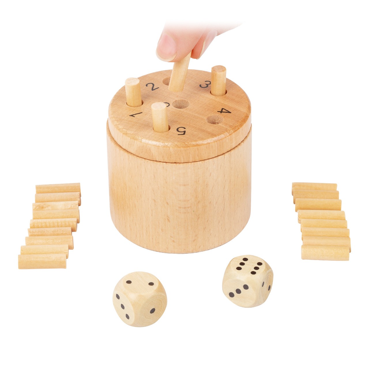 Vzrušující hra s kostkami, která vyžaduje strategii i štěstí! Tato klasická dřevěná hra je vhodná pro dva až šest hráčů a lze ji hrát ve dvou variantách. Cílem je zbavit se všech vašich tyčinek jejich umístěním do správných otvorů, podle toho, jaké číslo padne na kostce. A tady je něco obzvláště praktického: přidáním druhé kostky lze tuto společenskou hru rozšířit na druhou variantu, která vyžaduje strategické myšlení v každém herním kole. Po dokončení hry lze herní plochu jednoduše použít jako úložný box. Kdo má největší štěstí při hodu kostkou? Hlavní vlastnosti: vhodné pro 2 až 6 hráčůmožné hrát ve dvou variantách přidáním druhé kostkypraktické balení - dřevěný boxprocvičuje strategické myšlení