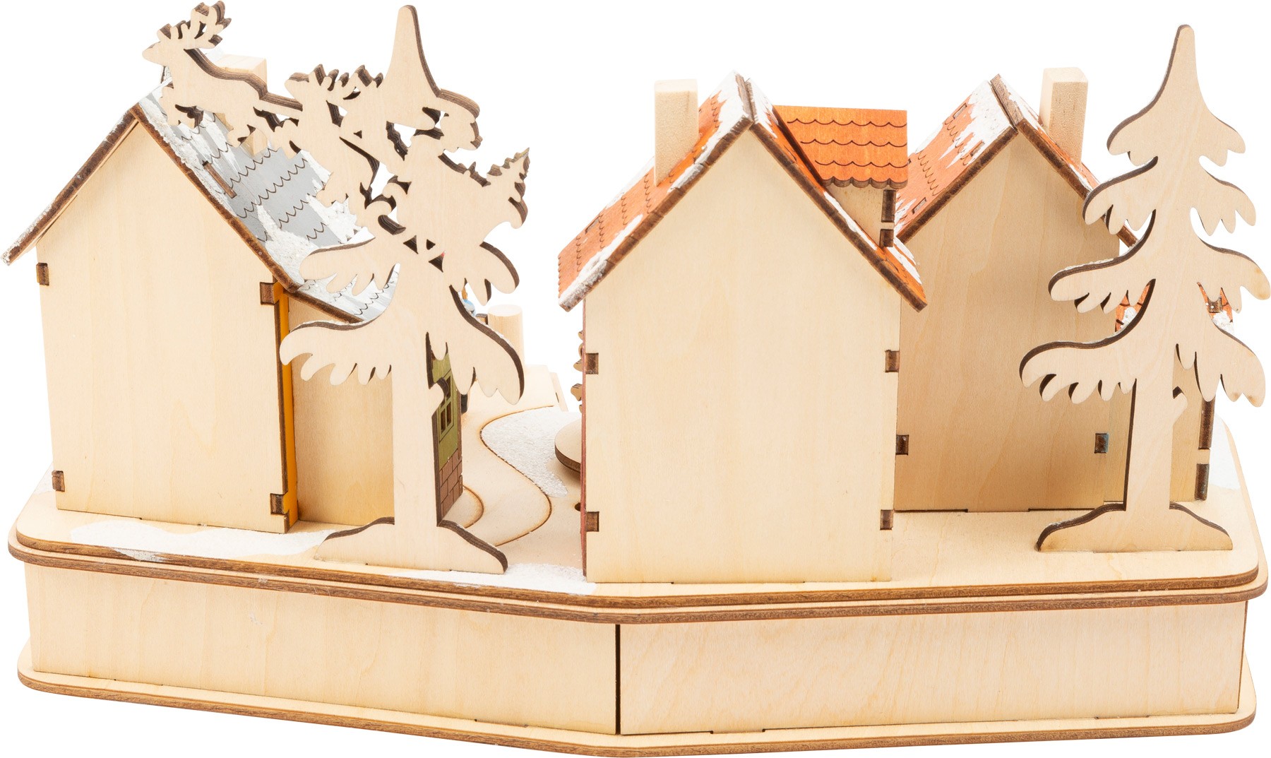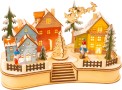 S touto bohatě zdobenou vánoční vesnicí se vánoční duch jistě nastěhuje i k vám domů. Barevné domky jsou vyrobeny z jemně vyřezávaného dřeva poskytující nepřímé osvětlení. A je tady ještě jedna skvělá věc: Vánoční stromeček uprostřed vesnice se po zapnutí lampy otáčí a pokud se podíváte pozorně, můžete dokonce spatřit Santu Clause a jeho sáně. Baterie nejsou součástí balení. Hlavní vlastnosti: dekorativní vánoční lampa jistě obohatí předvánoční časpropracované detaily