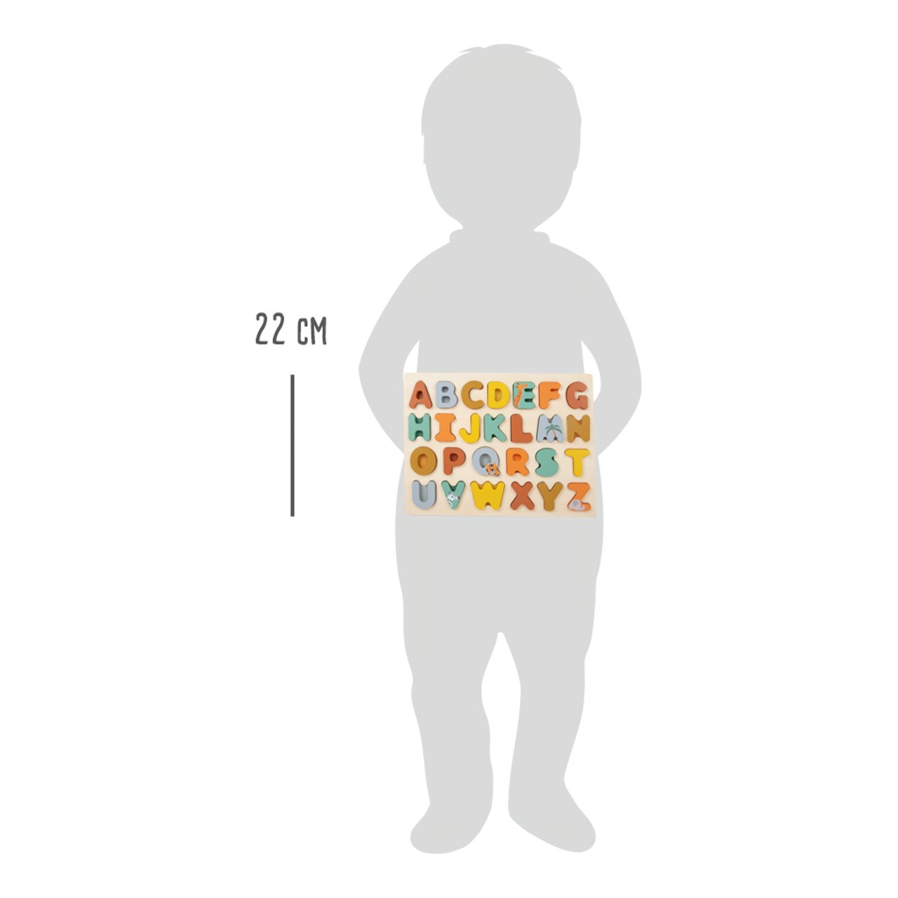 Naučte se abecedu hravým způsobem! S tímto dřevěným puzzlem v trendy barvách se děti naučí abecedu a procvičí si jemnou motoriku formou hry. Najdete zde 26 vystouplých dřevěných písmen, která lze jednoduše uchopit a vložit do správných otvorů i malýma rukama. Můžete je ale také postavit mimo své otvory a složit slova! Roztomilé motivy safari jako zebra, žirafa, slon nebo tygr děti nadchnou k učení se písmen abecedy. Hlavní vlastnosti: pastelové barvyzákladová deska a 26 dílůskvělá didaktická pomůckarozvíjí logické myšlení