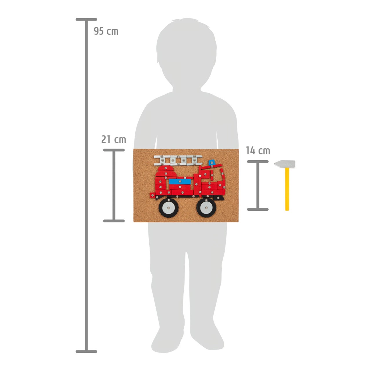 Rozměry tabulky: 30x21x1 cm Rozměry kladiva: 14x6x2 cm Věk: 3+ Materiál: dřevo, korek, kov Celý popis