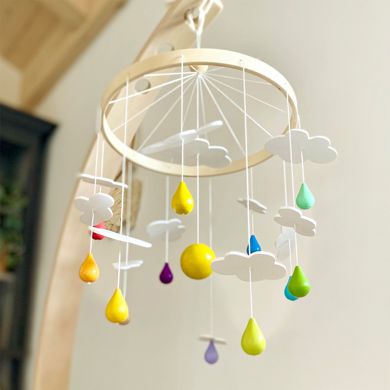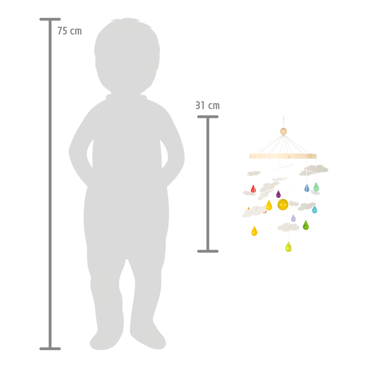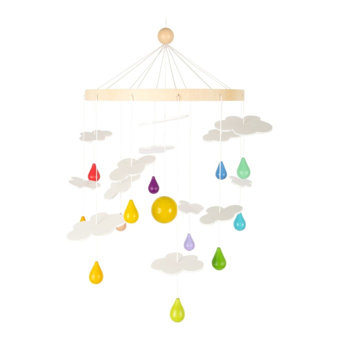 Dešťové kapky v barvách duhy! Moderní kolotoč probudí u dětí zvědavost, lze jej jednoduše zavěsit nad postýlku nebo přebalovací stolek, 3D prvky mu dodávají šmrnc. Barvy duhy pěkně ladí s jednoduchou bílou a částmi z přírodního dřeva. Nebeské sny jsou s hračkou zaručeny!Instalace kolotoče není složitá, díky jednoduchému designu a barevnému přechodu kapek se bude hodit do každého dětského pokoje. Dešťové kapky jsou lakovány tak, aby kresba dřeva zůstala viditelná. Zaoblené hrany a jemné tvary zajistí příjemný haptický zážitek. Díky tvaru prvků se kolotoč dobře otáčí. Hlavní vlastnosti: moderní 3D kolotočveselé duhové barvy v kombinaci s bílou a přírodním dřevemhračka probudí u dětí zvědavostjednoduchá instalace3D tvary pohání rotaci, vytváří uklidňující efektdešťové kapky jsou lakovány tak, aby kresba dřeva zůstala viditelnázaoblené hrany a jemné tvary