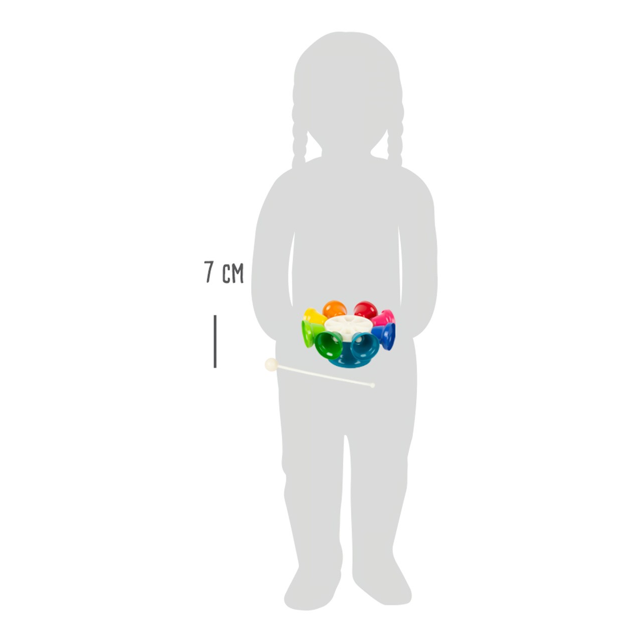 Rozměry: výška zvonku 7 cm, Ø 15 cm, délka paličky: 17 cm, Ø 1,5 cm Věk: 3+ Materiál: kov,plast Celý popis
