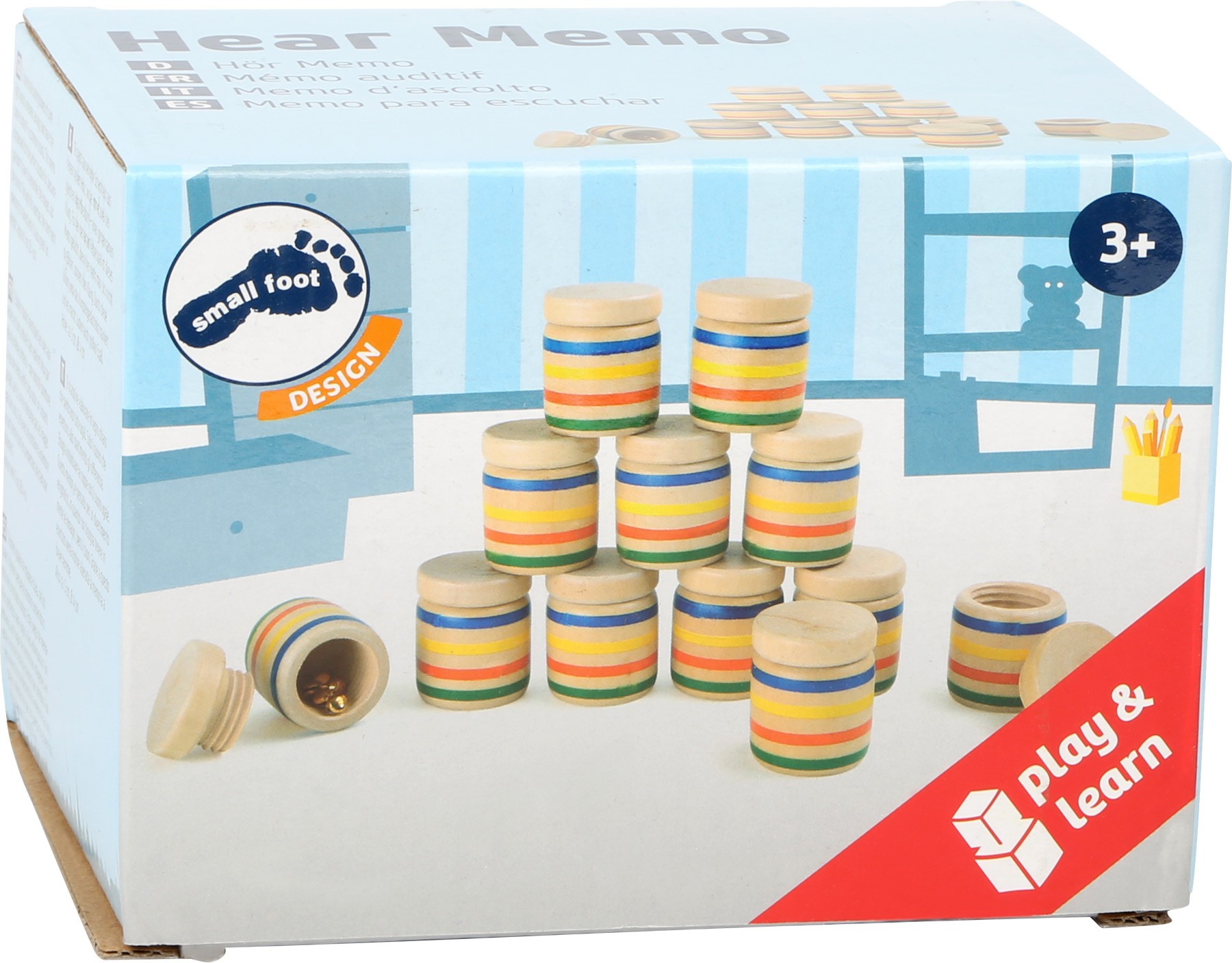 12 vysoce kvalitních dřevěných dóz se šroubovacím uzávěrem dělá z této zvukové hry trenéra paměti. Ve dvou dózách je vždy stejný obsah a cílem hry je tento pár najít. Na vás je, co do dóziček vložíte. Uslyšíš rozdíl mezi skleněnými korálky, oblázky či zvonečky?  Hlavní vlastnosti: sada obsahuje 12ks dřevěných dózičekhra je určena pro 1-2 hráčetrénuje soustředění a paměť