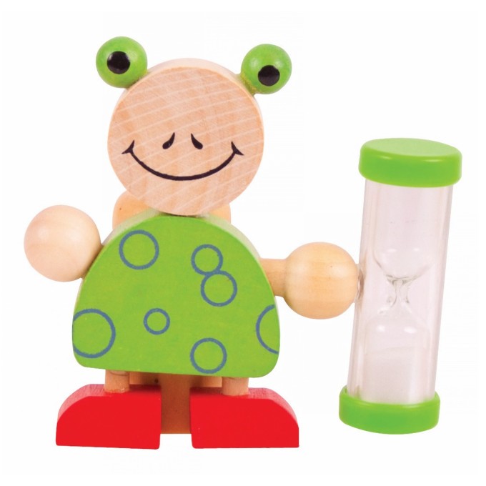 Úvod Pro děti Dřevěné dekorace Stojánky na kartáčky a dózy na zoubky Stojánek na kartáček s přesýpacíma hodinama 1ks Žabka