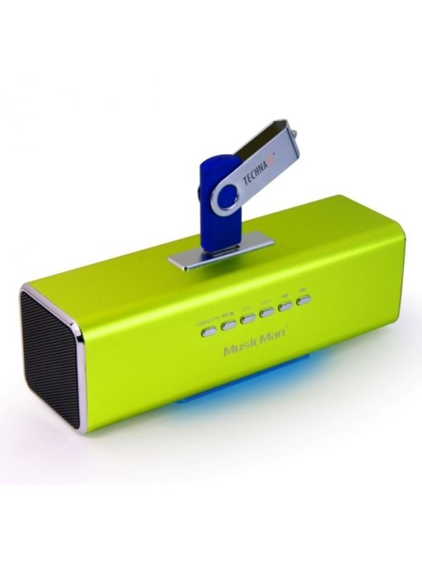 Přenosný stereo reproduktor MusicMan s vestavěnou baterií pro maximální mobilitu. Integrovaný MP3 přehrávač podporuje přehrávání hudby z mnoha zařízení. Nejjednodušší volbou je připojeni USB disku, nebo vložení microSD karty. Další možnosti jsou propojení s MP3, CD, DVD, iPhone, iPad, PC, mobilním telefonem, atd. Nechybí ani FM-radio.