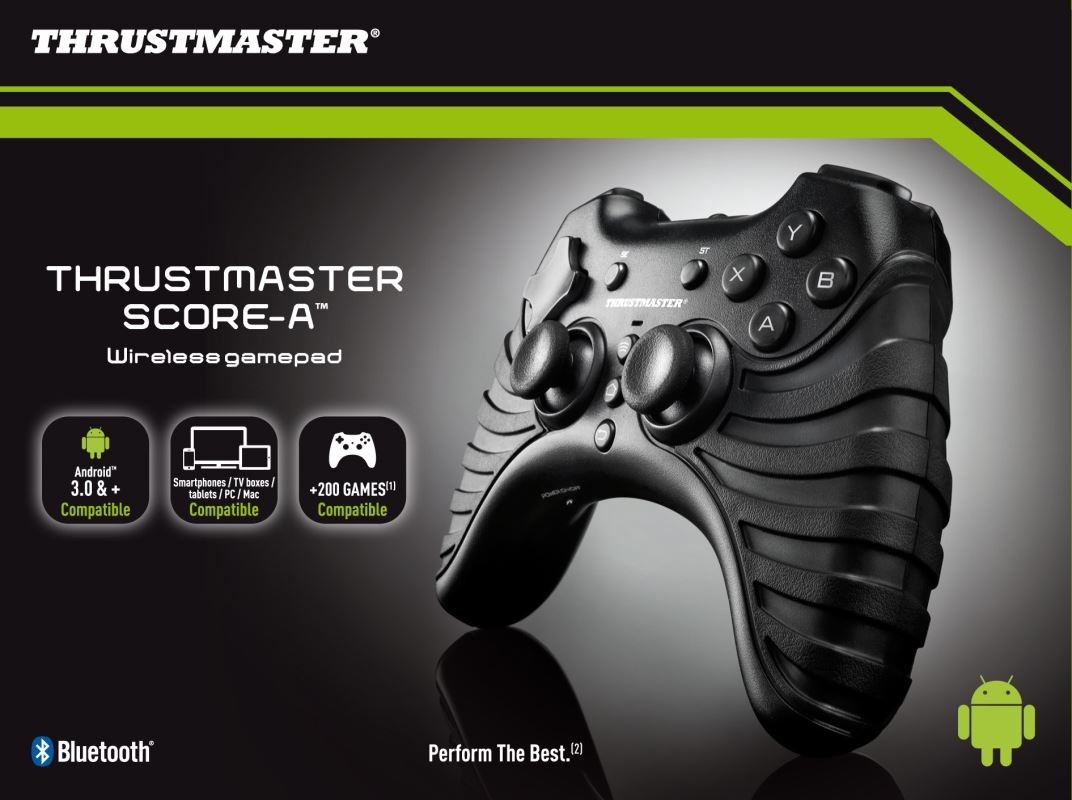 Proměňte váš mobilní telefon nebo tablet v herní konzoli s novým bezdrátovým gamepadem Thrustmaster Score-A. Ovladač se připojuje pomocí bezdrátového Bluetooth rozhraní a podporuje chytré telefony a tablety s operačním systémem Android 3.0 Lepší zážitek z hraní - Ovládání pomocí Gamepadu Score-A mnohonásobně zvýší zážitek z hraní. Nejenže šetříte dotykový displej, ale máte zpětnou odezvu a ovladač se navíc příjemně drží v rukou. Připojte tablet nebo smartphone k televizi a můžete začít hrát na velké televizi z pohodlí vašeho křesla.