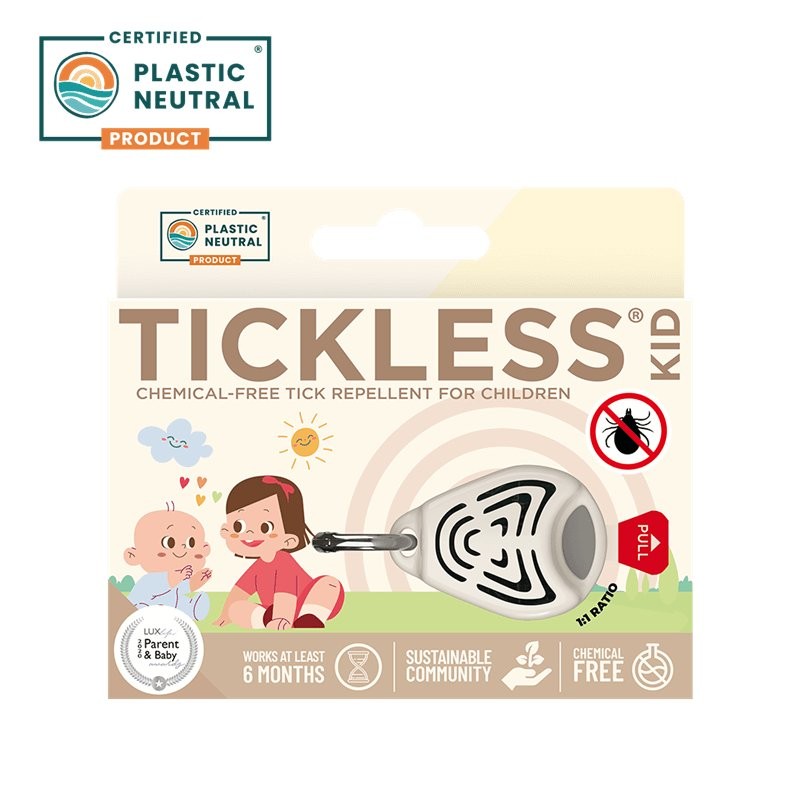 TICKLESS® KID je ideálním řešením proti klíšťatům již od prvních dní dítěte venku. Pro děti, batolata a děti ve věku od 0 do 10 let. Postará se o bezstarostný čas strávený s dětmi v přírodě. Zařízení odpuzuje klíšťata bez použití nebezpečných chemikálií. Jednoduše a bezpečně připevněte zařízení k oblečení dítěte. Po aktivaci odpuzuje klíšťata 6-12 měsíců, což umožní celé Vaší rodině vychutnat si přírodu bez starostí. Je netoxický a nepoužívá ani neuvolňuje žádné chemické látky ani zápachy, takže je bezpečný pro každého.