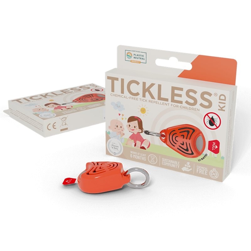 TICKLESS® KID je ideálním řešením proti klíšťatům již od prvních dní dítěte venku. Pro děti, batolata a děti ve věku od 0 do 10 let. Postará se o bezstarostný čas strávený s dětmi v přírodě. Zařízení odpuzuje klíšťata bez použití nebezpečných chemikálií. Jednoduše a bezpečně připevněte zařízení k oblečení dítěte. Po aktivaci odpuzuje klíšťata 6-12 měsíců, což umožní celé Vaší rodině vychutnat si přírodu bez starostí. Je netoxický a nepoužívá ani neuvolňuje žádné chemické látky ani zápachy, takže je bezpečný pro každého.