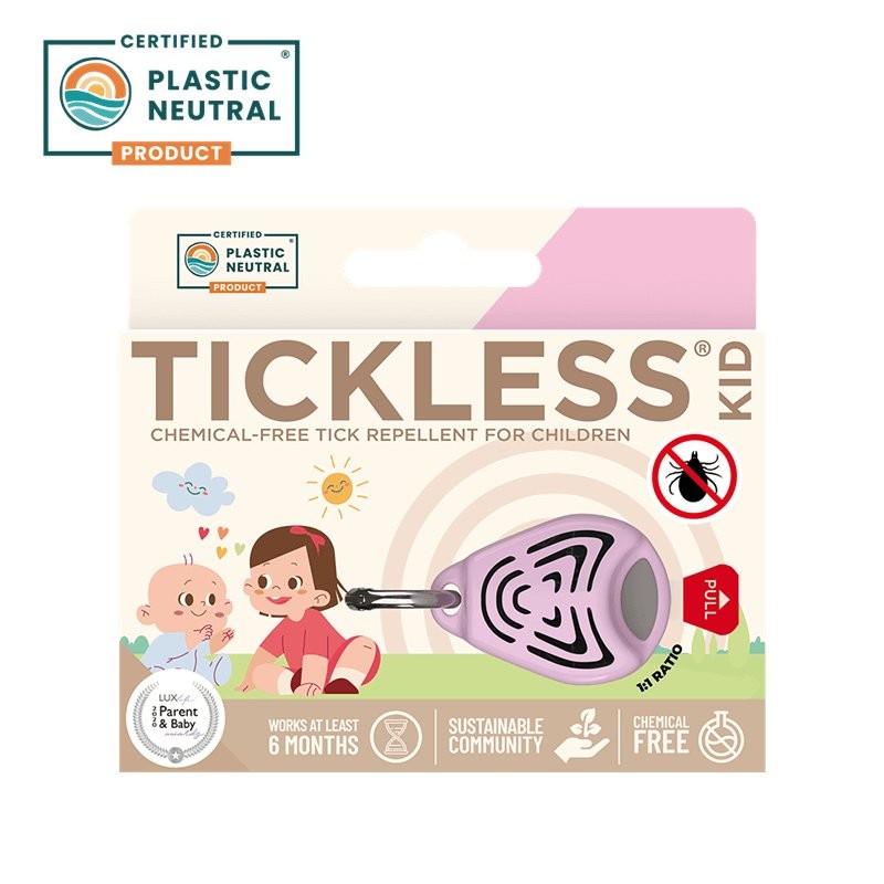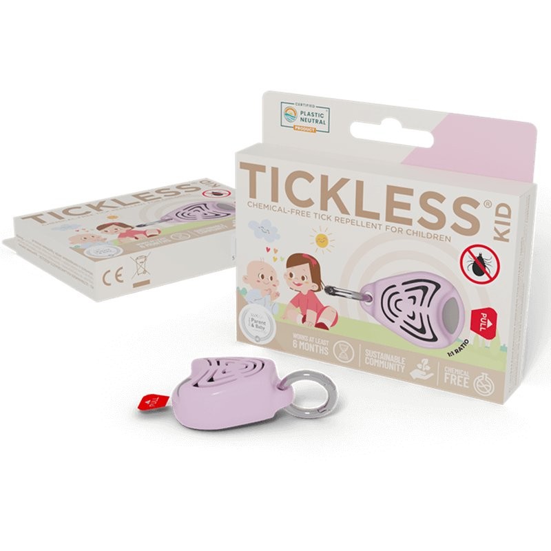 TICKLESS® KID je ideálním řešením proti klíšťatům již od prvních dní dítěte venku. Pro děti, batolata a děti ve věku od 0 do 10 let. Postará se o bezstarostný čas strávený s dětmi v přírodě. Zařízení odpuzuje klíšťata bez použití nebezpečných chemikálií. Jednoduše a bezpečně připevněte zařízení k oblečení dítěte. Po aktivaci odpuzuje klíšťata 6-12 měsíců, což umožní celé Vaší rodině vychutnat si přírodu bez starostí. Je netoxický a nepoužívá ani neuvolňuje žádné chemické látky ani zápachy, takže je bezpečný pro každého.