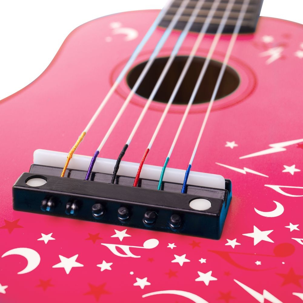 Poškozený obal. Nové zboží bez závad. Klasická dřevěná akustická kytara s šesti strunami může být naladěna jako pravá. Kytara má natažené nylonové struny, v balení s trsátkem na vybrnkávání. Je vyrobena z odolného dřeva a bude tak ideální první akustickou kytarou Vašeho dítěte – nastávajícího hudebníka. Děti si užijí zábavu, když budou předvádět koncert své oblíbené rockové nebo popové hvězdy, bude to show pro celou rodinu! Krásná modrá kytara s hvězdami je velká tak akorát pro dětské ruce. Děti se díky ní naučí rytmu a časování. Podporuje senzorickou a kreativní hru. Tuto hračku nelze pokládat za hudební nástroj. Hlavní vlastnosti: Akustická kytara s šesti strunami Nylonové struny i trsátko Učí rytmus a časování podporuje senzorickou a kreativní hruOdpovídá evropské bezpečnostní normě. Vyrobeno z kvalitních materiálů z odpovědných zdrojů