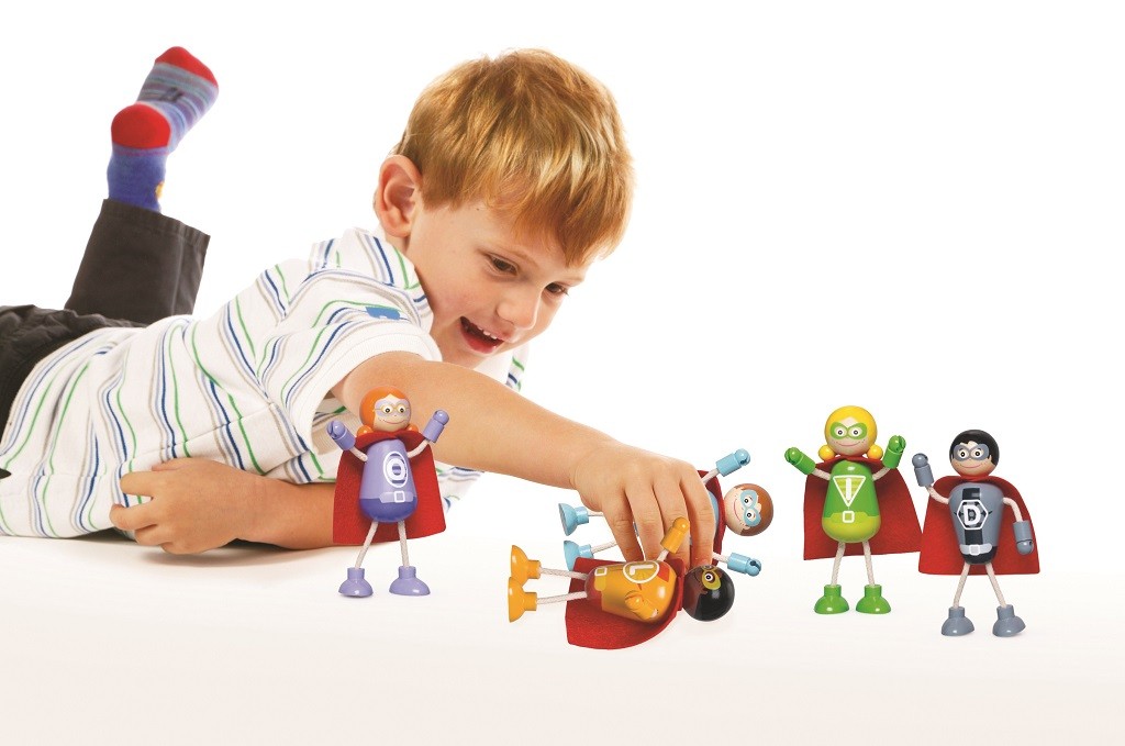 Je to pták? Nebo letadlo? Ne, je to tým pěti superhrdinů! Jsou připraveni zachránit svět ve svých uniformách s maskou a kápí. Mají ohebné a nastavitelné horní i dolní končetiny a každá postavička dokáže samostatně stát či sedět. Set zahrnuje postavičky žen i mužů. Skvělý způsob, jak děti podpořit v kreativní a představivé hře. Rozvíjí koordinaci ruka-oko, jemnou motoriku a zručnost. Vyrobeno z kvalitních materiálů z odpovědných zdrojů. Odpovídá evropské bezpečnostní normě. Hlavní vlastnosti: 5ks super postaviček s ohebnými a nastavitelnými končetinamipodporuje kreativní a představivou hrurozvíjí jemnou motoriku a zručnost