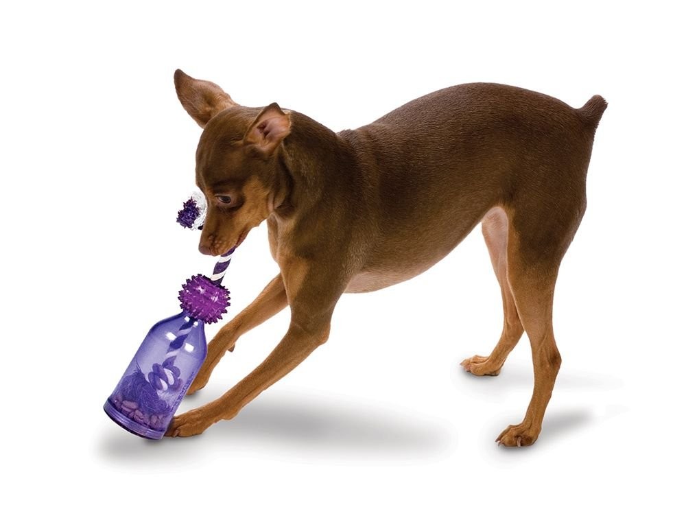 Tato důmyslná hračka zajistí psovi dlouhou zábavu. Využít ji můžete i při tréninku nebo na krmení. Skládá se z lahve, která je vyrobena z odolného materiálu, lana a gumového míčku. Při pohybu z lahve vypadávají pamlsky.