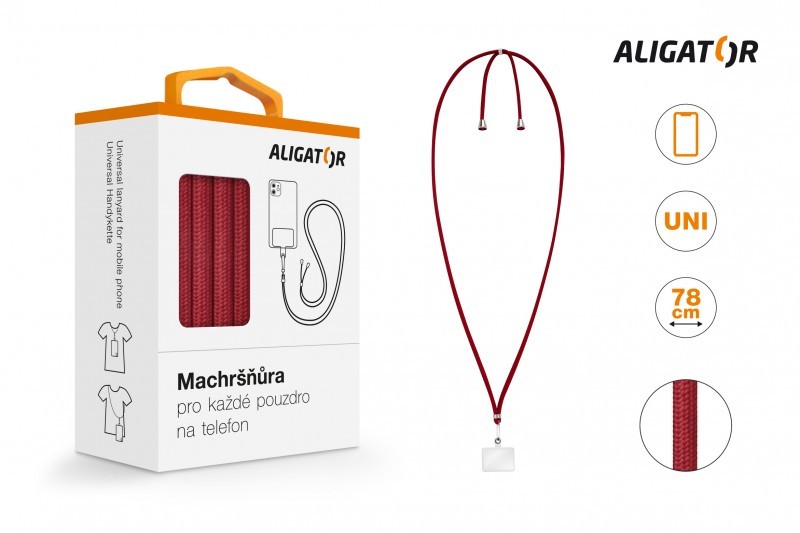 Úvod Mobily, chytré hodinky, tablety Příslušenství pro mobilní telefony Pouzdra a kryty Univerzální Univerzální šňůrka pro mobilní telefon Aligator Machršňůra, červená