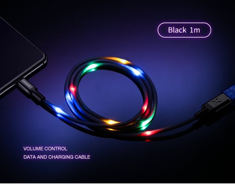 USAMS SJ288 je datový kabel, který podporuje i přenos dat. Zaujme vás jedinečný design kabelu. Kabel obsahuje zabudovaná LED světla, která se přizpůsobí vaší hudbě, rytmu a nikdo tento kabel nepřehlédne. Váš kabel se světelně roztančí.