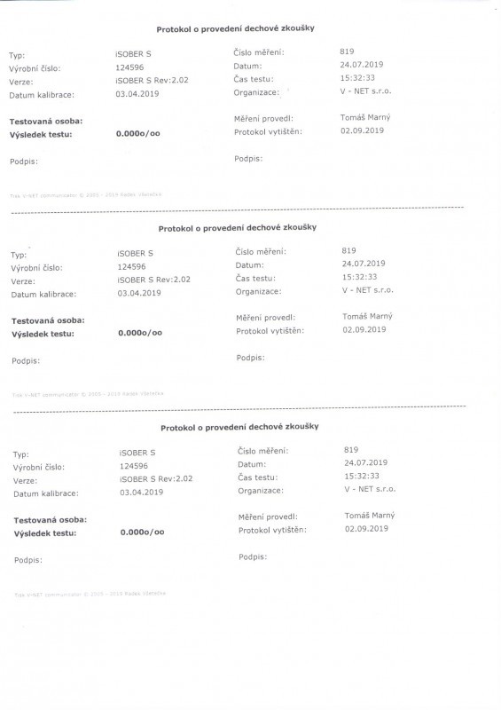 Přesnost:   +/- 5%   od 0,00 - 1,00 promile při 25°C