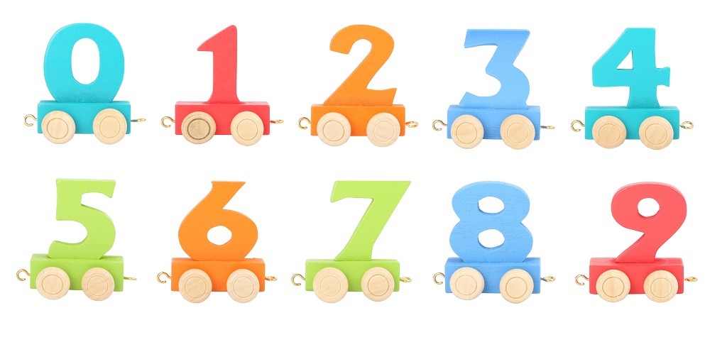 Vagónek dřevěné vláčkodráhy - barevné číslice - číslo 9