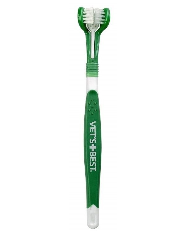 Vet 's Best® zubní kartáček má tři hlavy, které se pohodlně přizpůsobí tvaru každého zubu a tím efektivně vyčistí celý chrup Vašeho pejska. Doporučujeme jej používat v kombinaci s dentálním gelem pro psy Vet 's Best.