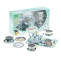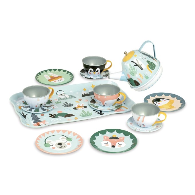 Kovový set nádobí s krásnou zvířecí ilustrací, s podtácem. Tento set je speciální v tom, že při servírování hraje hudbu. V balení najdete 14 ks vybavení: velký tác pro lehký přesun nádobí, 4 hrnečky s podtácky, 4 dezertní talířky a konvičku, která při náklonu začne hrát pěknou melodii. Velikost tak akorát pro dětské ruce. Ilustrováno Michelle Carlslund. Vyrobeno ve Francii. Hlavní vlastnosti: kovová sada nádobí uvnitř konvice na čas je ukryt natahovací hudební strojekdesign Michelle Carlslundobsahuje 14 ks Cestujte s námi v naivním a elegantním světě dánské ilustrátorky Michelle Carlslund, světě jemných barev, který je plný roztomilých medvědů a přátelských ptáčků. V roce 2010, když Michelle ještě studovala grafický design, vytiskla doma své ilustrace a zkusila je prodat na designovém trhu, kde se setkaly s velkým úspěchem! Několik obchůdků chtělo začít prodávat její výtvory, a tak ji napadlo, že by bylo fajn začít podnikat. Michelle se rychle stala uznávanou nezávislou ilustrátorkou. Dnes lze její ekologická grafická díla zakoupit po celém světě v designových buticích, papírnictvích a dětských obchodech. Michelle se inspiruje vším kolem ní. Její výtvory jsou něžné a poetické, stylizovaný a dětinský styl, který se perfektně prolíná s hračkami firmy Vilac. „Jsem hranolky milující, časová optimistka a tvůrkyně ekologických plakátů a ilustrátorka na volné noze se sídlem v dánské Kodani,“ to by řekla ilustrátorka Michelle Carlslundová, kdyby se měla popsat jednou větou.