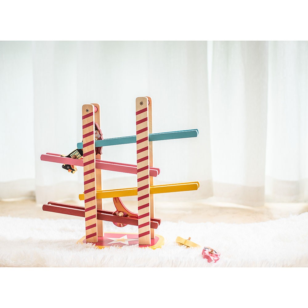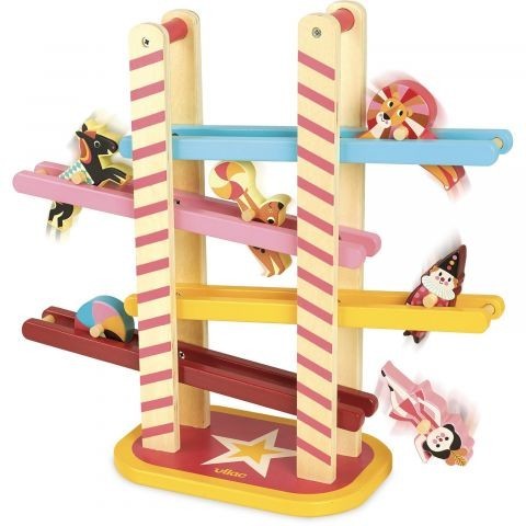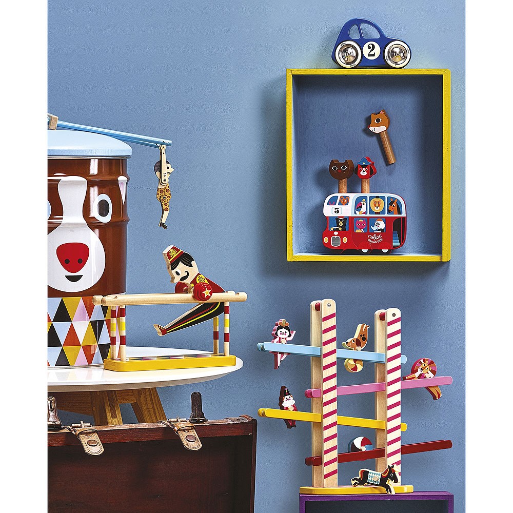 Kaskáda zvířátek akrobatů je vyrobena z masivního dřeva. Krásná barevná hračka, s kterou si děti užijí mnoho zábavy. Obsahuje postavičky jako kůň, lev, klaun, pes, akrobatka, míč. Ilustrováno Ingelou P. Arrhenius. Hlavní vlastnosti: design Ingela P. Arrhenius Švédská umělkyně Ingela Peterson Arrhenius se narodila v roce 1967. Umění a design měly vždy místo v jejím životě a než začala její kariéra ilustrátorky, Ingela pracovala jako umělecká vedoucí ve Stockholmu. Poté studovala reklamní a grafický design na umělecké škole také ve Stockholmu. V roce 1992 začala podnikat jako ilustrátorka na volné noze a pracovala mezinárodně napříč reklamou, designem, nakladatelstvím… V minulosti vytvářela tiskové vzory pro tkaniny, tapety, papírnictví, také pracovala na obalech, produktovém designu, bytových doplňcích a hračkách. Její plakáty a designové hračky najdete po celém světě. Má vášeň pro retro styl, což je jasně vidět na jejich dílech a také v jejím nadšení pro typografii a barvy. Nyní žije ve Stockholmu s manželem a dvěma syny.