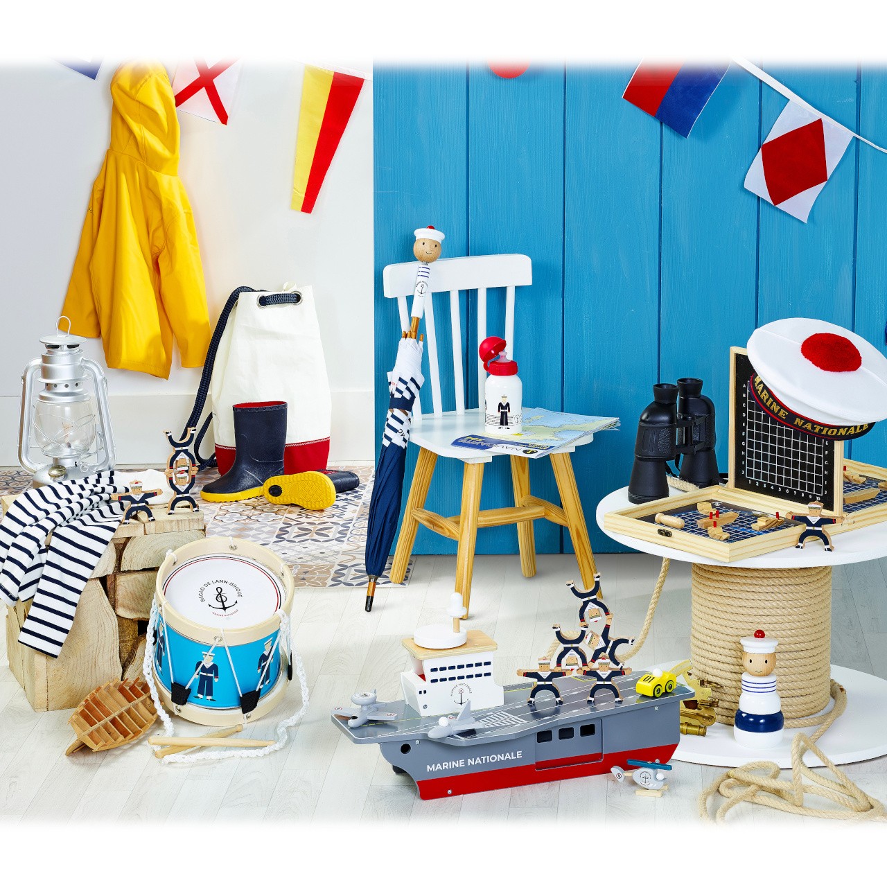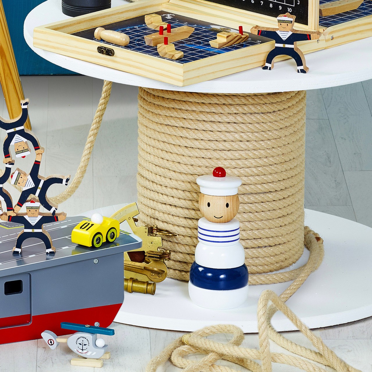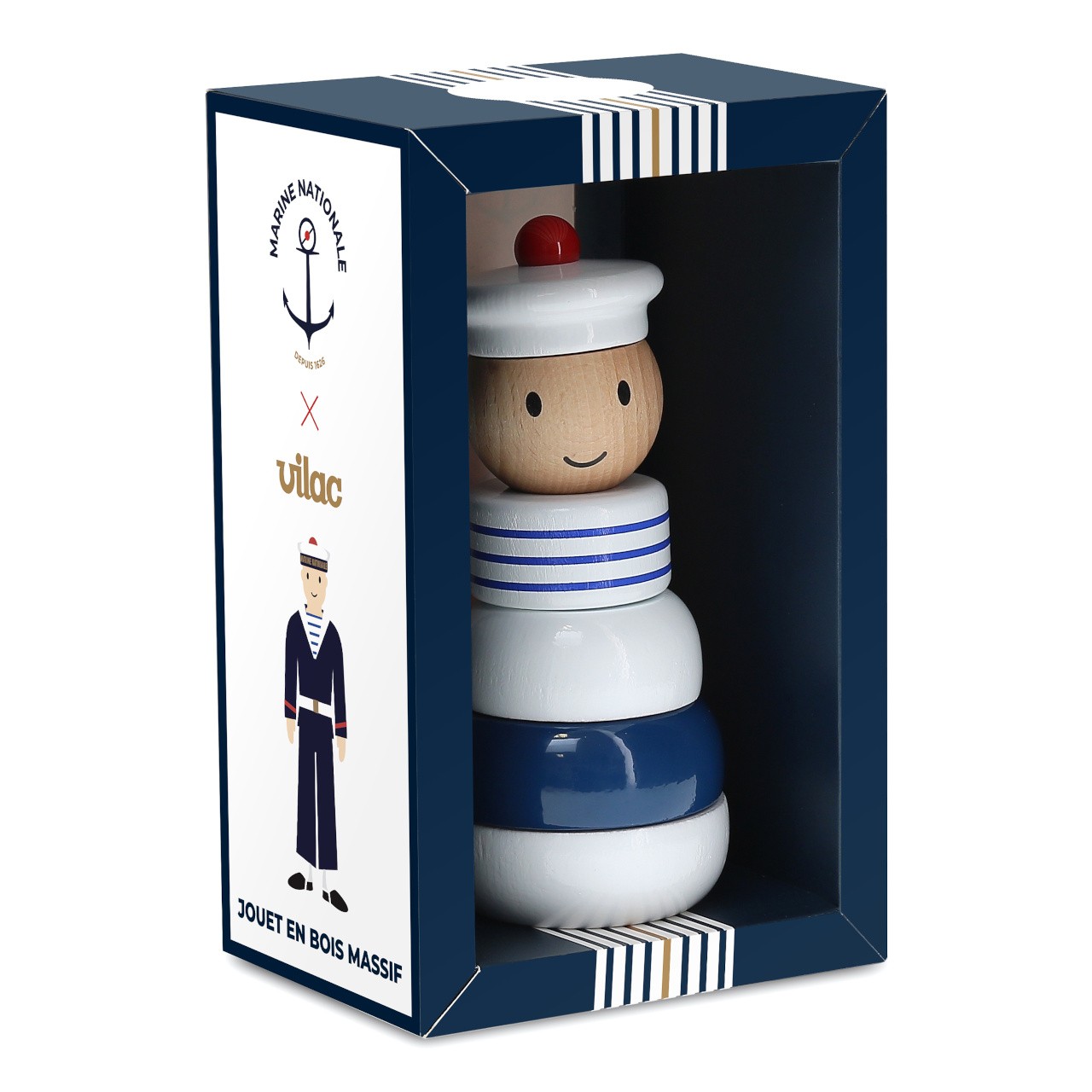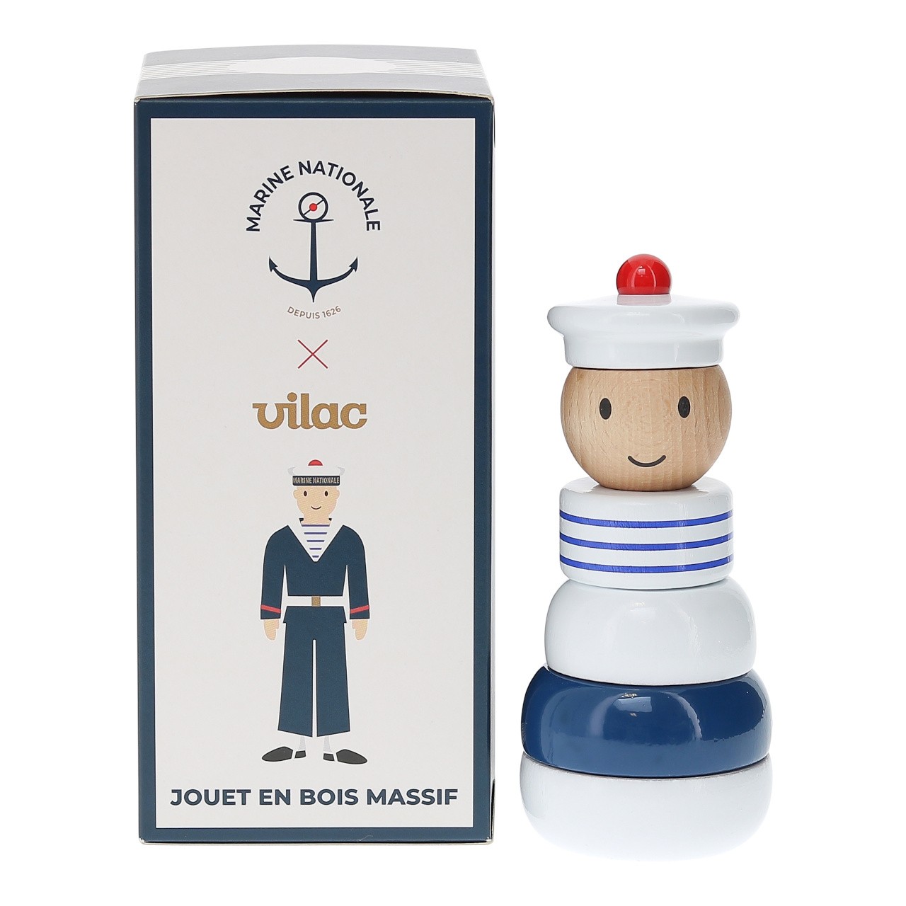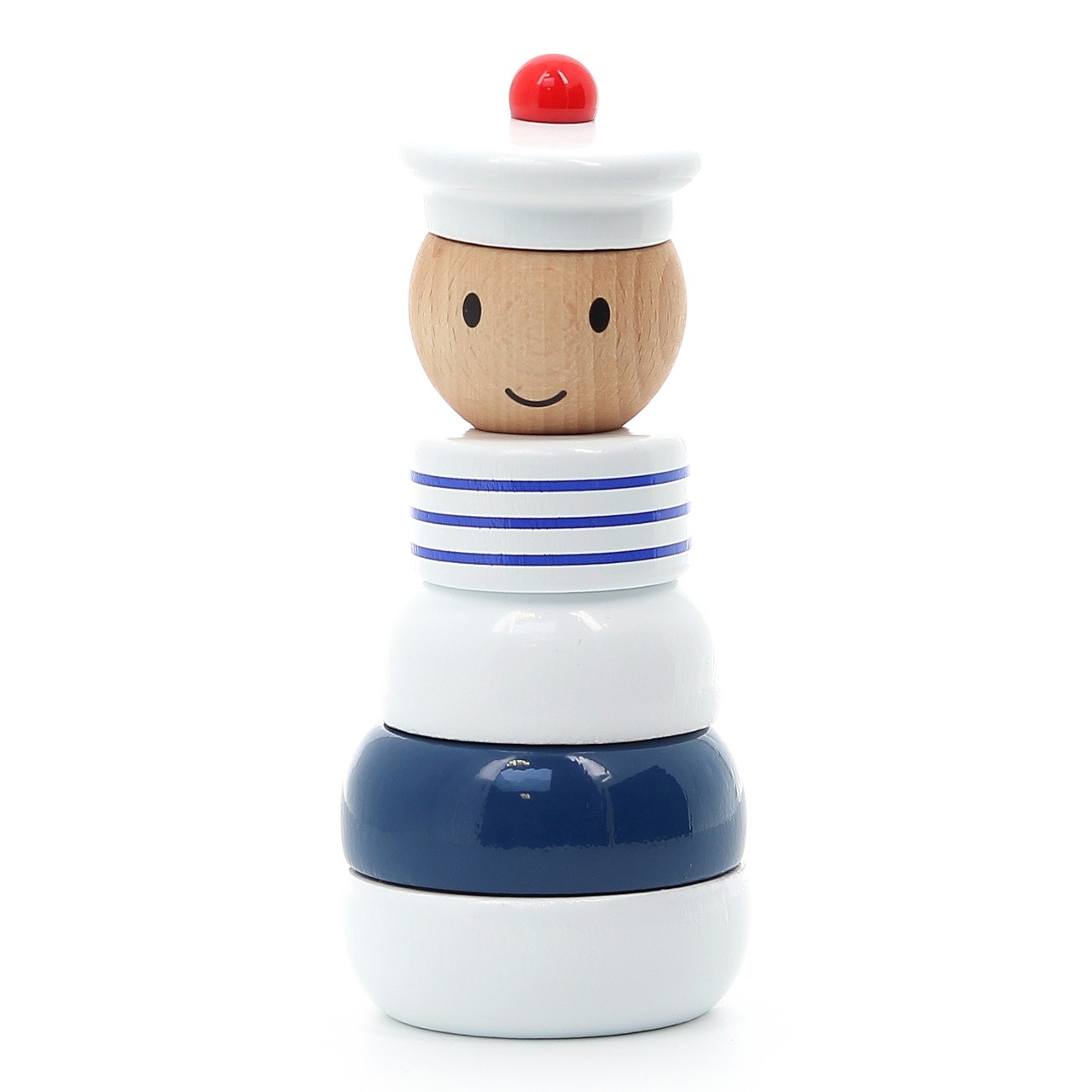 Robustní stohovací věž ve tvaru námořníka je vyrobena z masivního dřeva. Svou originální barevností vkusně doplní a zútulní dětský pokojíček.   Hlavní vlastnosti:základna a 4 díly skládačkyjedinečné barevné zpracovánívyrobeno ve Francii