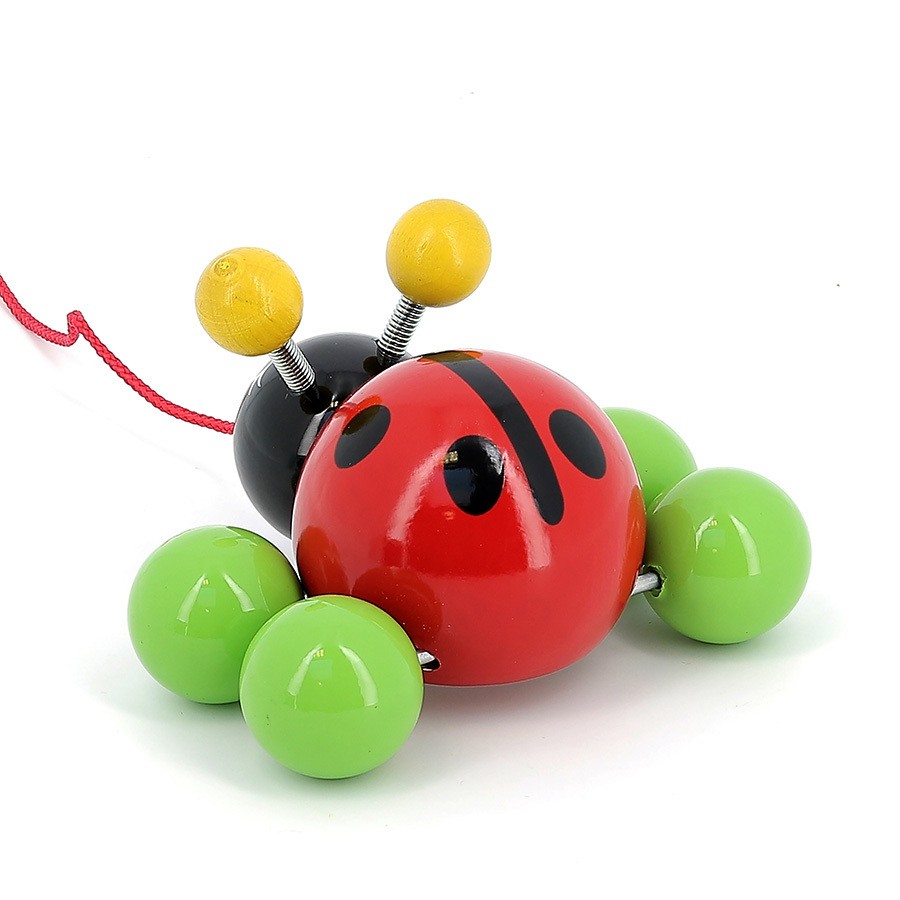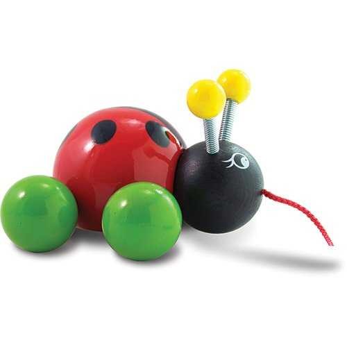 Dřevěná tahací beruška z lakovaného masivu, s tykadly na pružince. Ty se při tahání pohybují. Vyrobeno ve Francii.  Hlavní vlastnosti: podporuje rovnováhu a koordinaci pohybůvyrobeno ve Francii